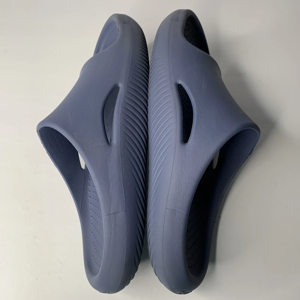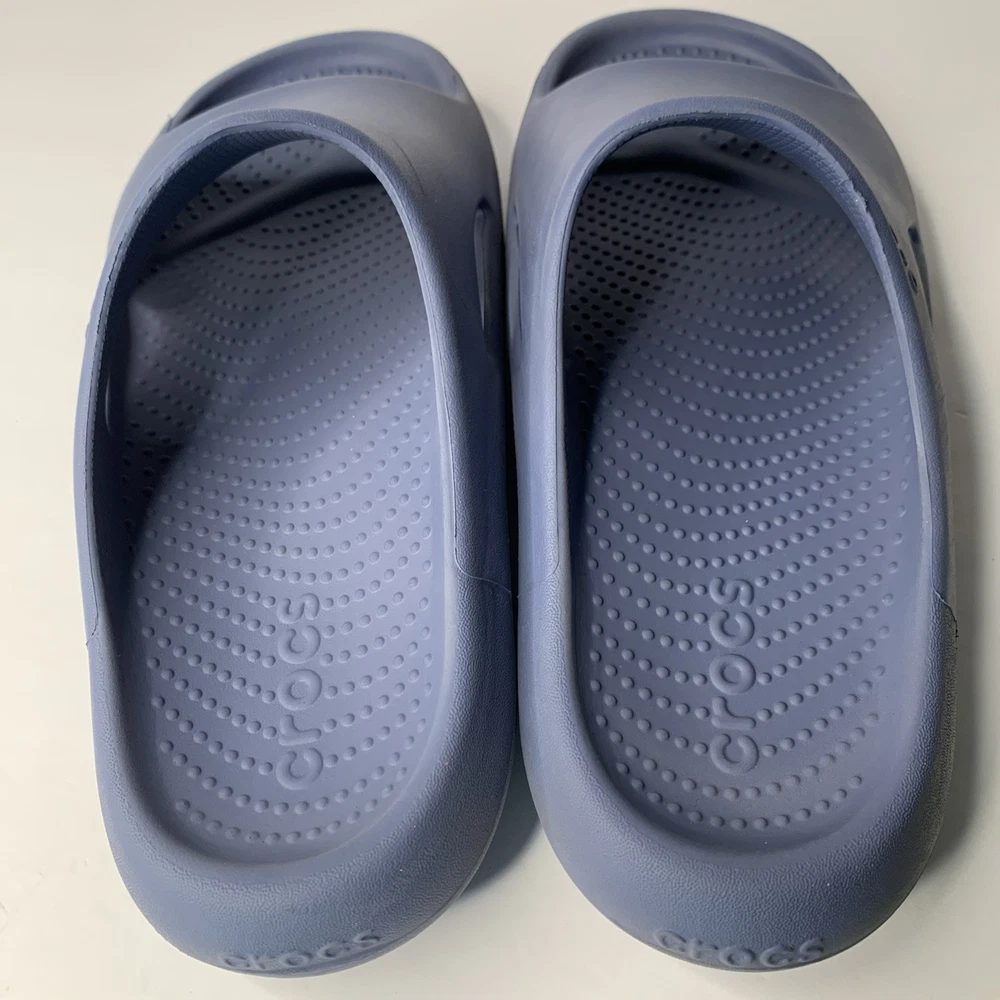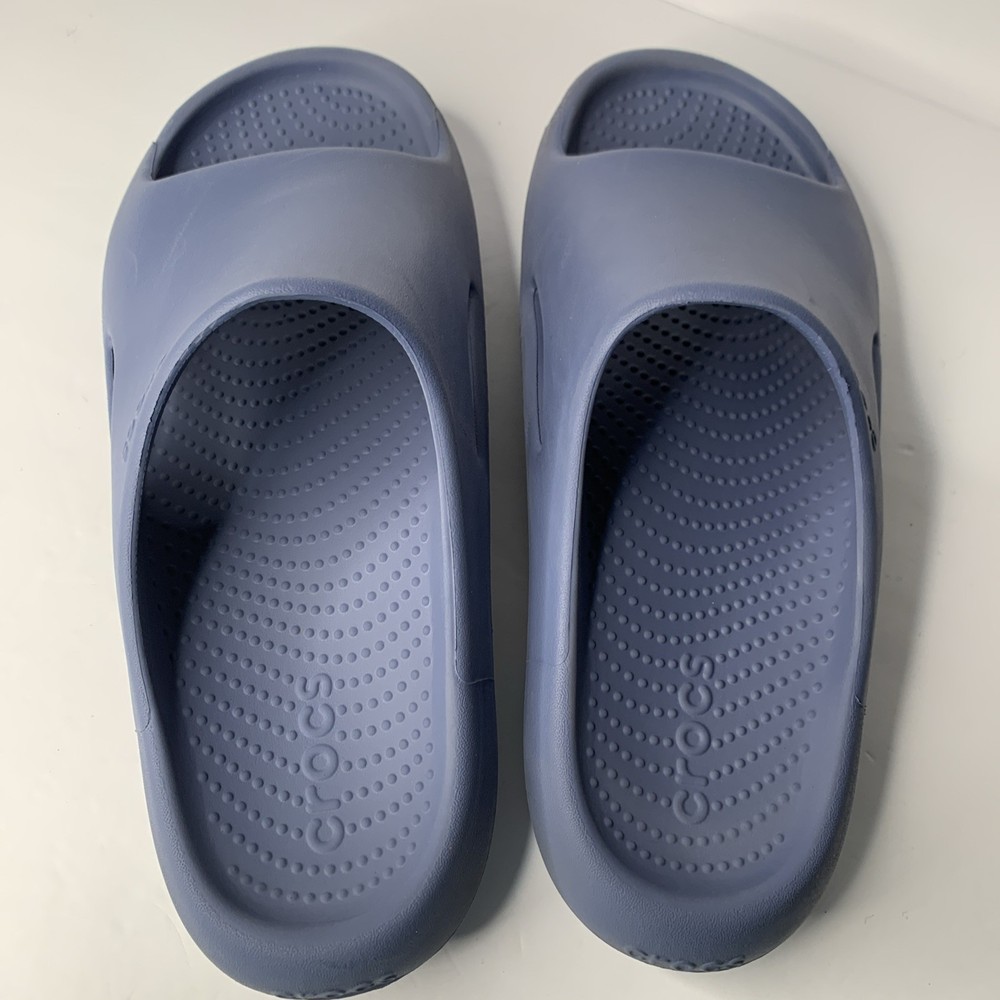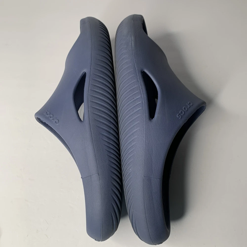 The Crocs Mellow Recovery Slides in Blue are a stylish and comfortable option for men. These slip-on sandals feature a rubber outsole, waterproof construction, and a lightweight design, making them perfect for travel, casual wear, or work during the summer, fall, or spring seasons. The blue color and logo accents add a touch of personality to these slides, while the foam insole and synthetic lining provide added comfort for all-day wear. Made in Vietnam, these Crocs sandals are a great choice for those looking for a versatile and practical shoe option.