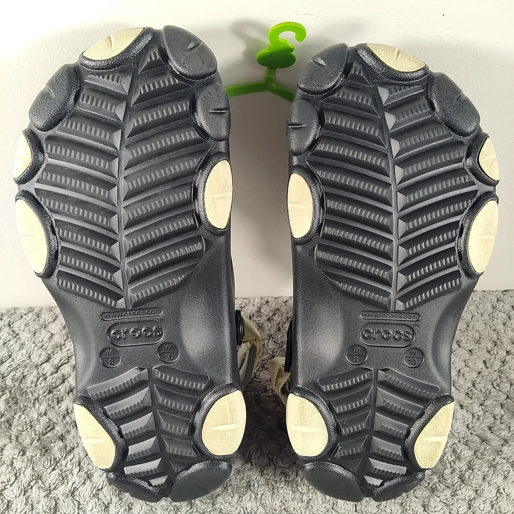 Crocs All-Terrain Lined Clogs for Men - Black - 8M Take your walking comfort off-road! The Crocs™ All-Terrain Lined Clogs for Men are specifically built with rugged lug outsoles and aggressive tread patterns, so you can enjoy sure-footed traction wherever your outdoor adventure takes you. Plus, these outsoles offer comforting foot support, and they deliver the Iconic Crocs Comfort – a lightweight, flexible, soft-as-air feel you've come to know and love. Up top, Croslite™ foam uppers offer foot protection and a classic Crocs look. Inside, synthetic fleece linings offer a soft comfort that's perfect for socks or bare feet. Ventilation ports encourage breathability, cooling airflow, and they drain water if that's ever needed. Easily adjustable heel straps create a customizable and snug fit. These men's Crocs are easy to clean and quick to dry. Imported. Manufacturer style #: 207936. Iconic Crocs Comfort lightweight, flexible, soft-as-air feel Croslite foam uppers Synthetic fleece linings Ventilation ports keep feet cool Adjustable heel straps Outsoles feature lug outsoles and aggressive tread