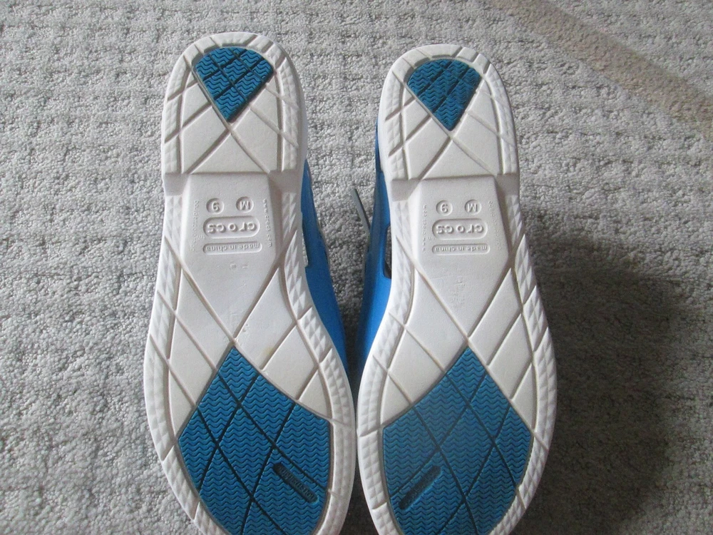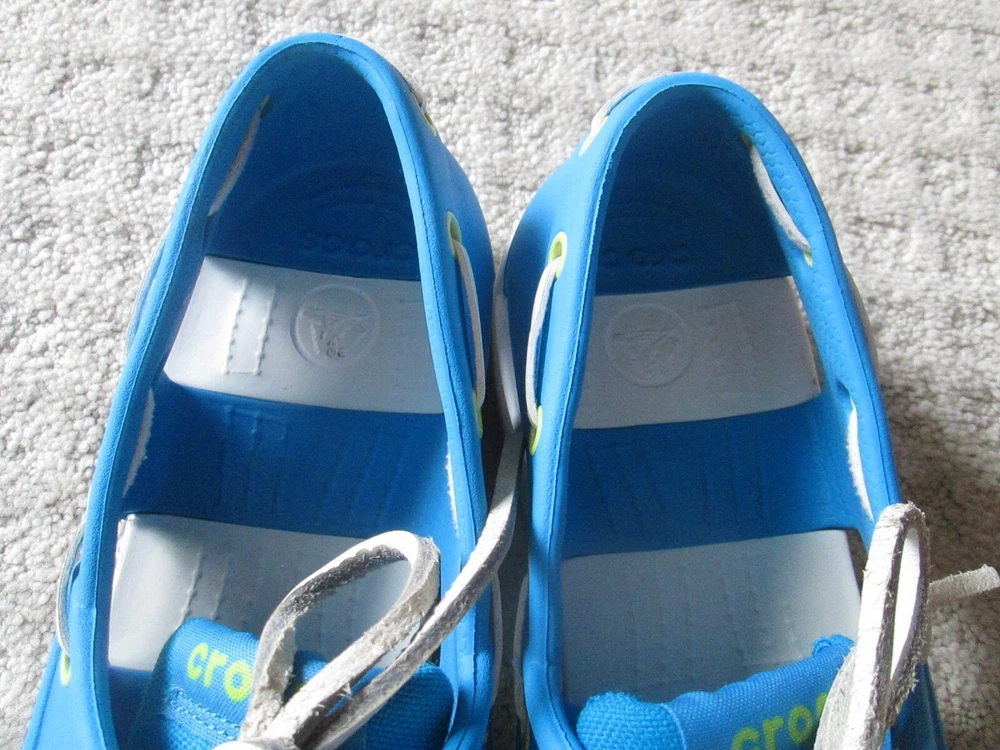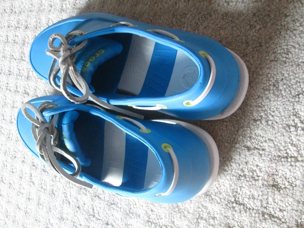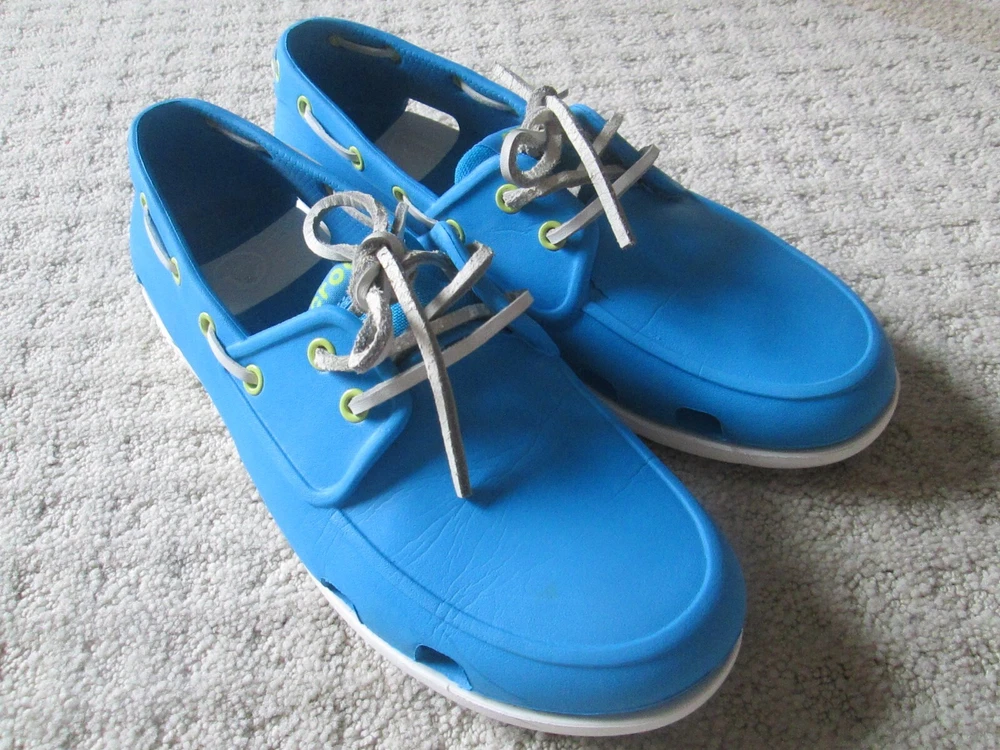 Accents:LogoUS Shoe Size:9Model:ClassicUpper Material:RubberColor:BlueOutsole Material:RubberBrand:CrocsTheme:Going OutOccasion:CasualStyle:Boat ShoeSeller Notes:“VERY nice barely worn and come as pictured Only MINOR wear/ soiling”Country/Region of Manufacture:VietnamPattern:SolidType:CasualFeatures:Breathable, ComfortClosure:Lace UpSeason:Fall, Spring, Summer, WinterDepartment:MenToe Shape:Round Toe