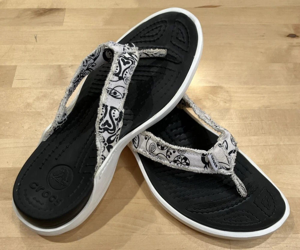 Crocs Mens Santa Cruz Surf Canvas Flip Flops Size 6 Paisley (Women's 8) Pre-owned. See photos for condition details. To upcycle, I reuse shipping material as often as possible. Buy more from my store and save on shipping.