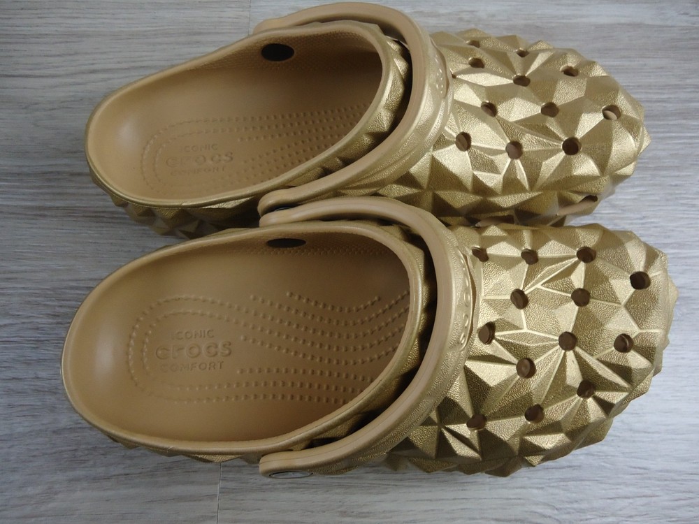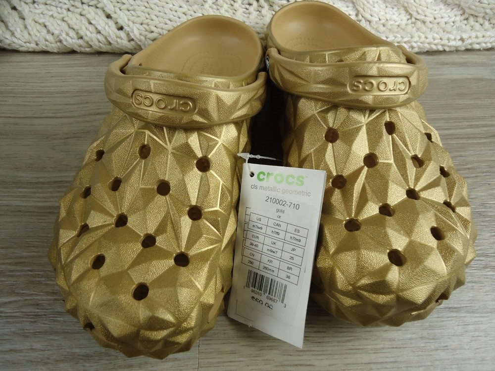 Crocs Metallic Geometric Gold Classic Clogs Unisex Brand New With Tags W9 M7