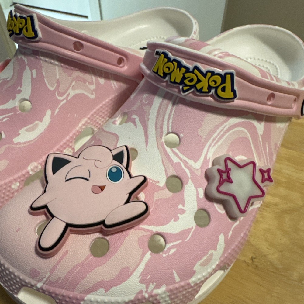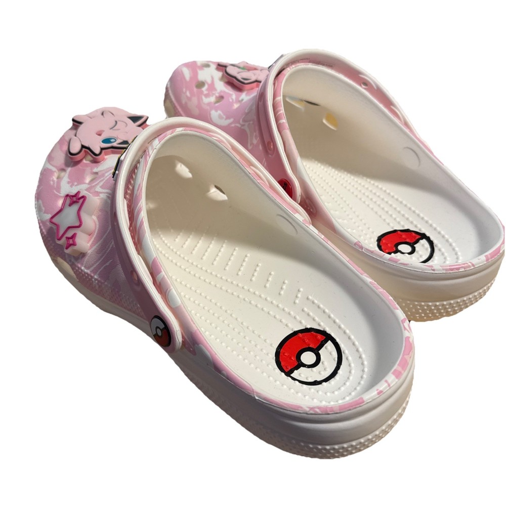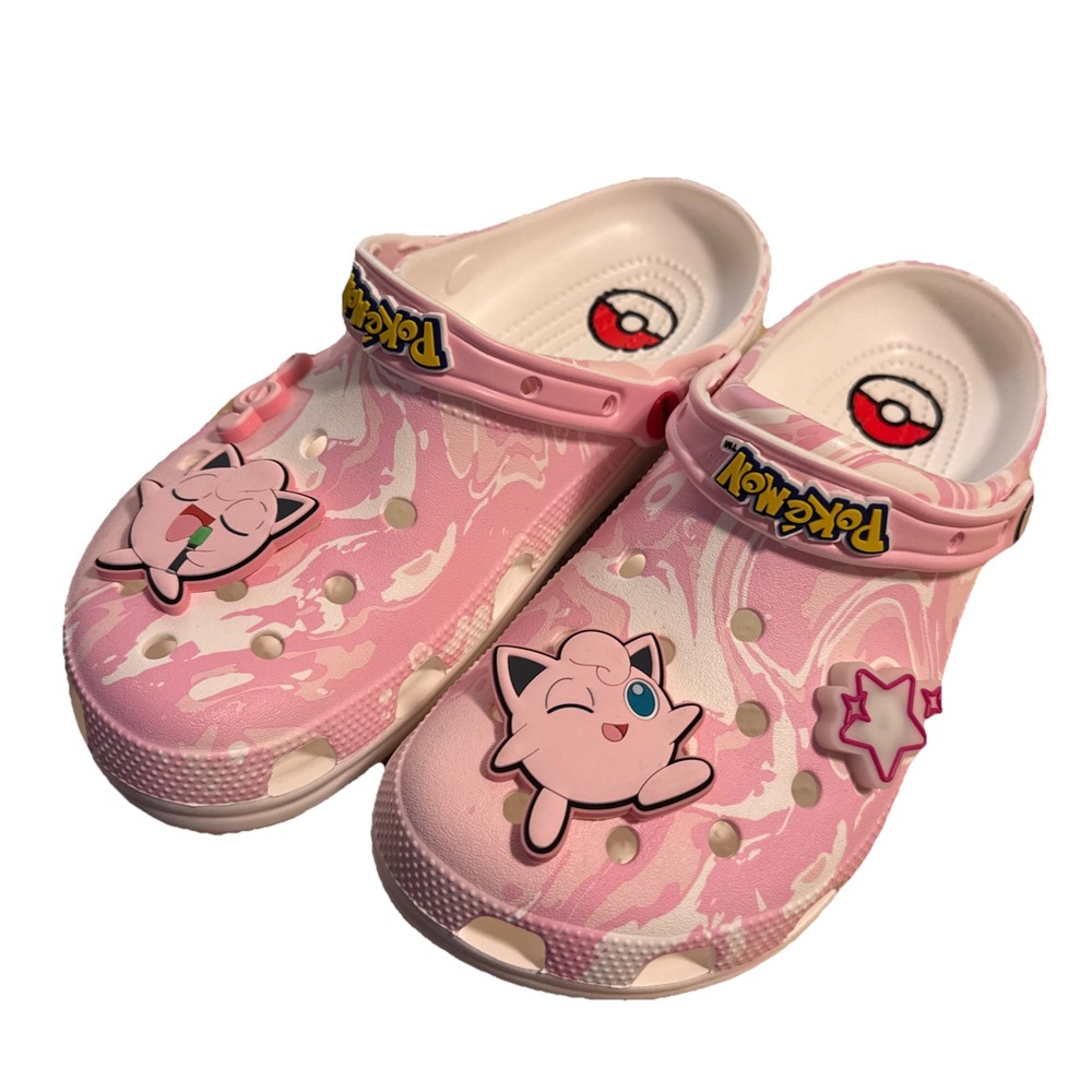 The Crocs Pokemon Jigglypuff Classic Clog is a colorful and fun shoe featuring the beloved Pokemon character Jigglypuff. This unisex clog is suitable for both men and women, with a US shoe size of men’s 9, and women’s 11. The classic Crocs style combined with the whimsical Pokemon theme makes this shoe a playful and comfortable choice for folks who love both classic footwear and popular Pokemon characters.