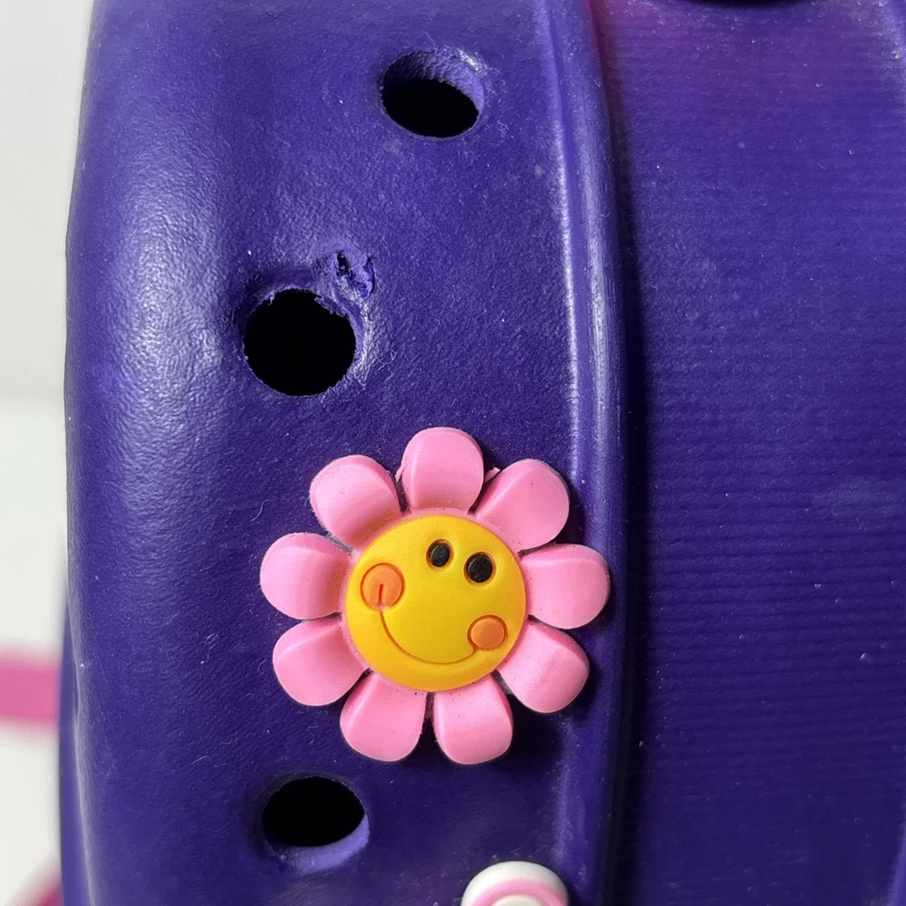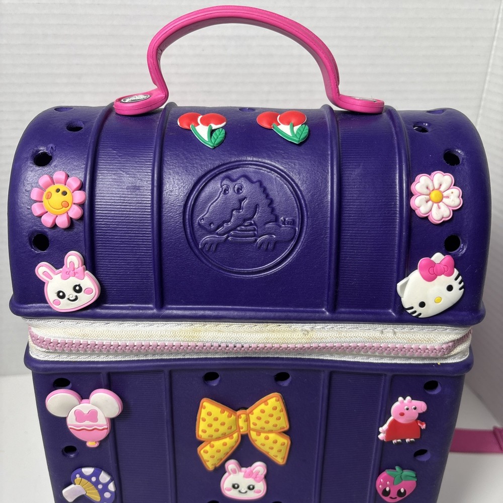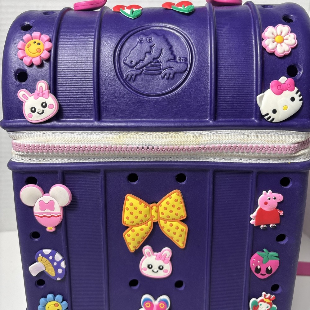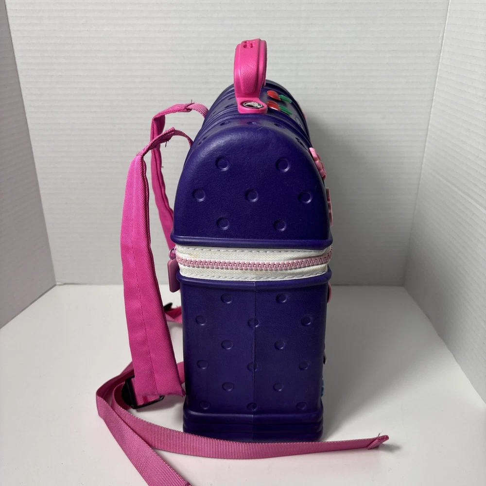 Please see pics, one faint spot where color is faded. One hole a little stretched from a jibbet and the glue that holds the zipper on is visible from the outside as a faint beige line all around.