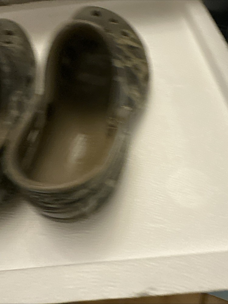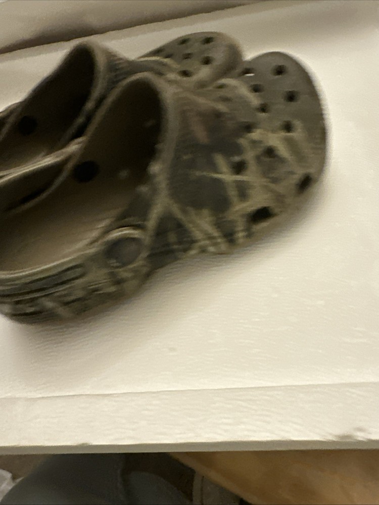 The Crocs Real Tree Advantage Max-4 HD Camo Clogs are stylish slip-on shoes designed for kids in size C 12. Featuring a low-top design with a closed toe and ankle strap, these clogs offer comfort and breathability with a rubber outsole and upper material. The colorful camo pattern and brand accents make them perfect for outdoor themes in any season, whether it's winter, summer, fall, or spring. Ideal for both boys and girls, these Crocs are a versatile and fun addition to any child's shoe collection.