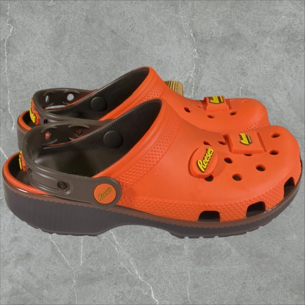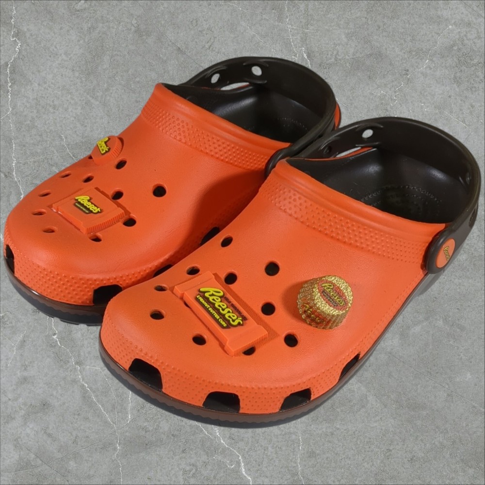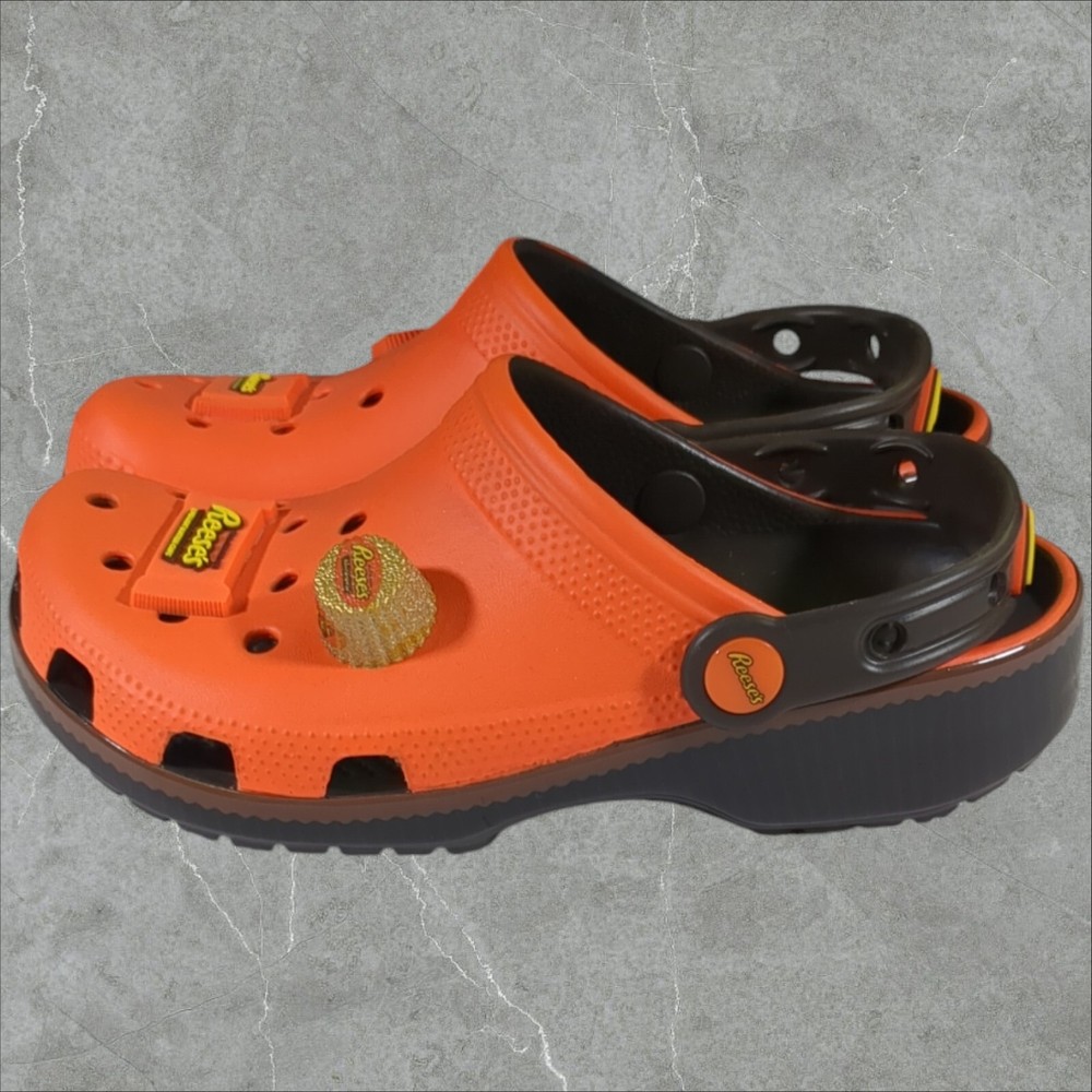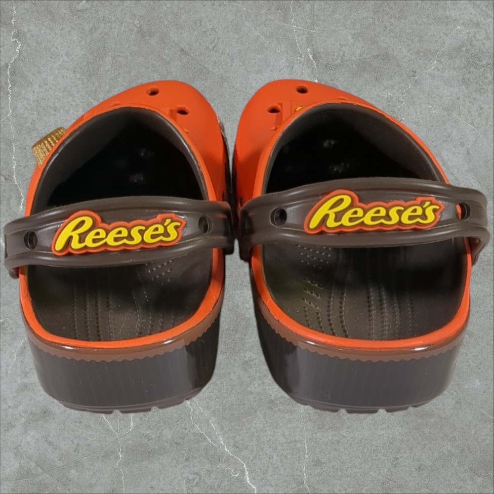 Get ready for a fun and exciting adventure with these Crocs Reeses Peanut Butter Cup Classic Clogs! These limited edition sandals are perfect for any occasion, whether it's a day at the beach, a school day, or a Halloween party. The clogs feature a closed toe and slip-on closure for easy wear, and they come in a vibrant orange color with a glow-in-the-dark design that will make you stand out from the crowd. The Crocs Reeses Peanut Butter Cup Classic Clogs are made of high-quality rubber and have a flat heel style, making them comfortable and breathable for all-day wear. They also feature a cushioned insole and a lightweight design, ensuring that your feet will stay comfortable and supported. The sandals are part of the Crocs Reeses product line and come with a logo accent, making them a stylish addition to your wardrobe. Order now and get ready to experience the fun and excitement of these classic clogs! If you like this item and would like to see more like it, click the link below to check out our store. 523 Supplier LLC | eBay Store Return Policy : Customer satisfaction is important to us. Good communication is crucial for eBay sales. Before leaving feedback, please notify 523 Supplier LLC about any concerns using eBay messaging. Items must be returned in original condition, with tags if applicable. Buyers are responsible for return postage . If the wrong item was shipped, we will refund the entire amount including return shipping.