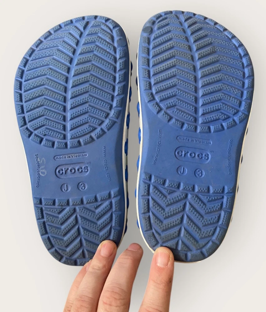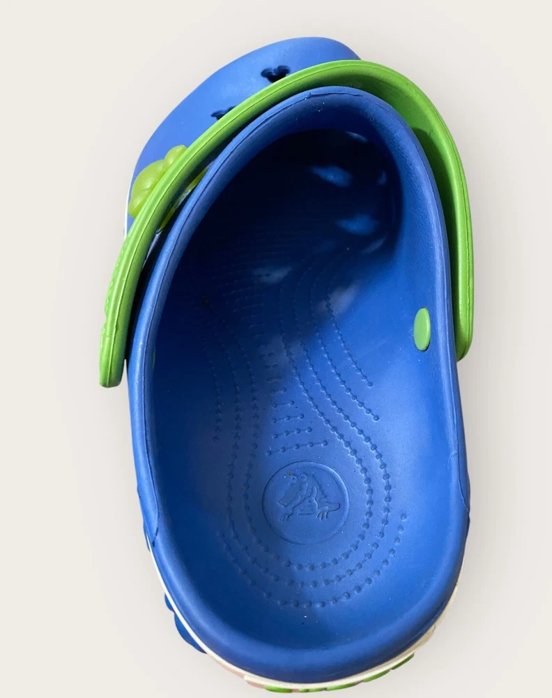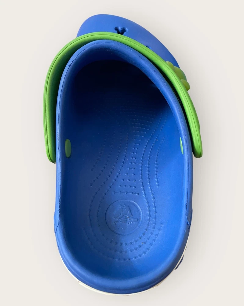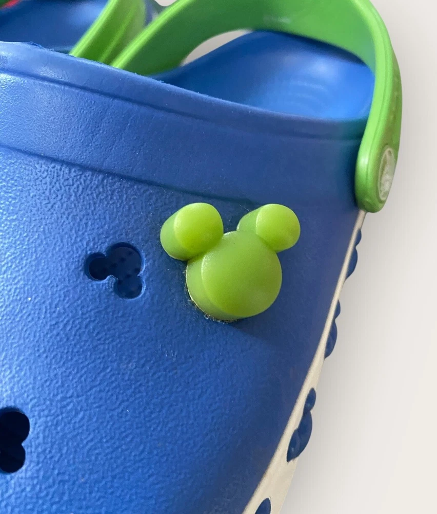 Add some Disney magic to your child's footwear with these Crocs Disney Blue Mickey Mouse Cut Outs Clogs. These sandals feature a round toe shape and slip-on closure for easy wearing. The upper is made of durable rubber material with cut-out accents of Mickey Mouse, making it a perfect choice for any Disney lover. The flat heel style and standard shoe width ensure comfort, while the rubber outsole provides good traction. Unisex Size J3 Blue Lime Green Get your child ready for any adventure with these stylish and functional Crocs Disney clogs. See full description