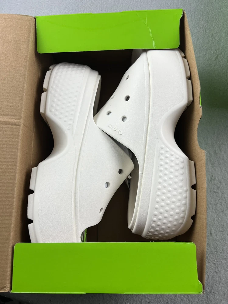Crocs Stomp Slide Wedge Sandals in Chalk White Size M7/W9 New