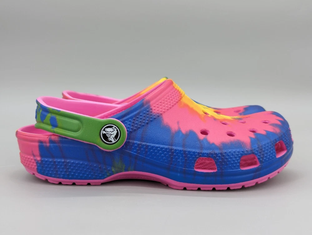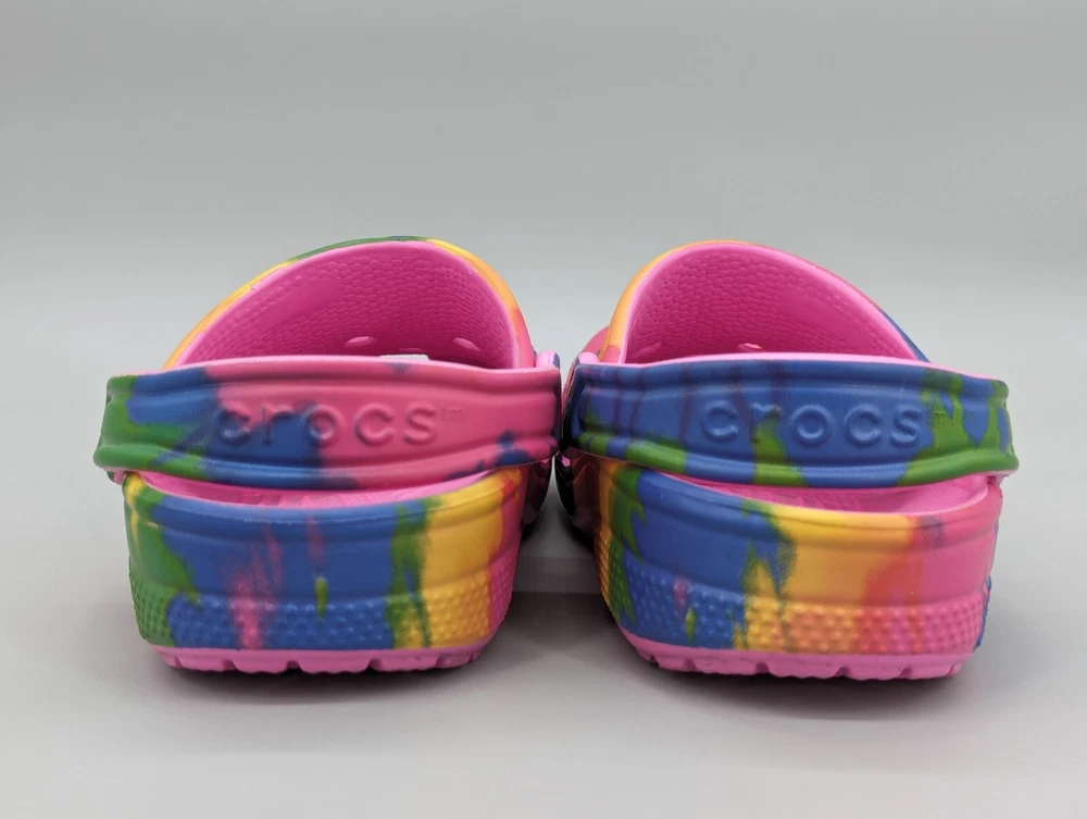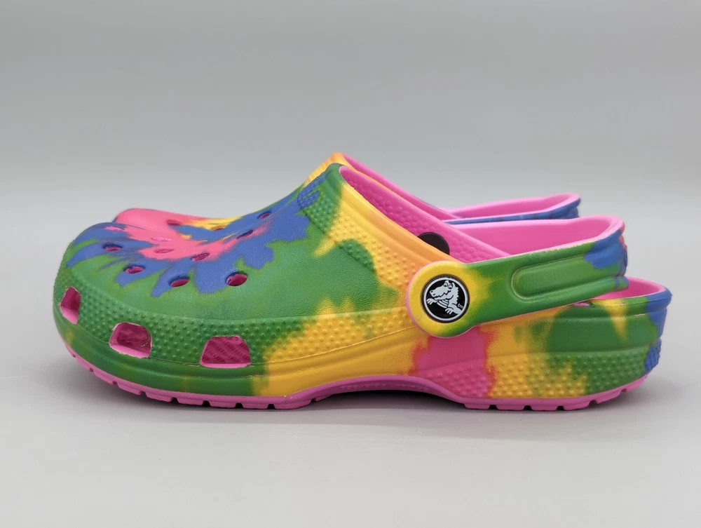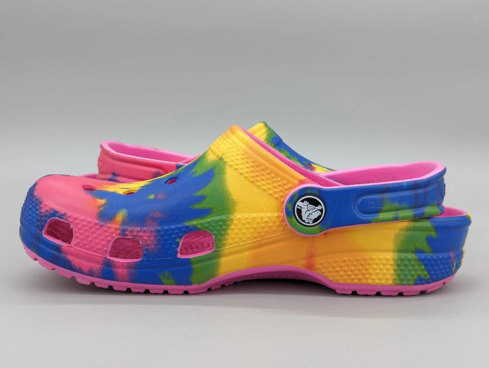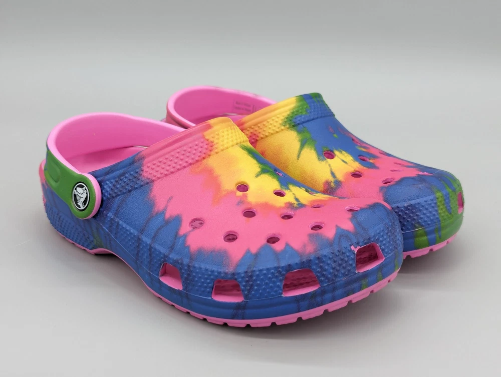 Crocs Tie Dye Electric Pink Blue Green Slip On Shoes 205453 Size Ladies 5 Mens 3 Cleaned and sanitized. Light wear.