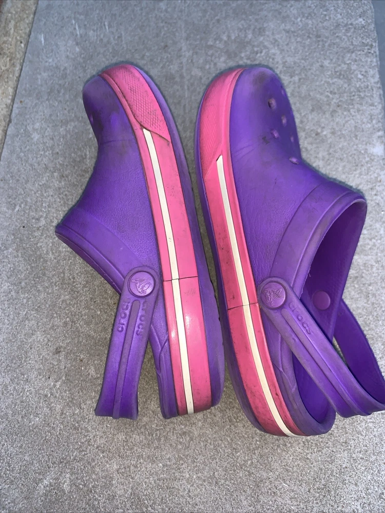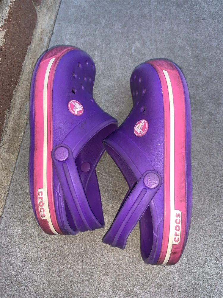 Crocs Toddler Kids Crocband II Clogs Blue White Red Size 12/13 C. Condition is Pre-owned. Shipped with USPS Ground Advantage.