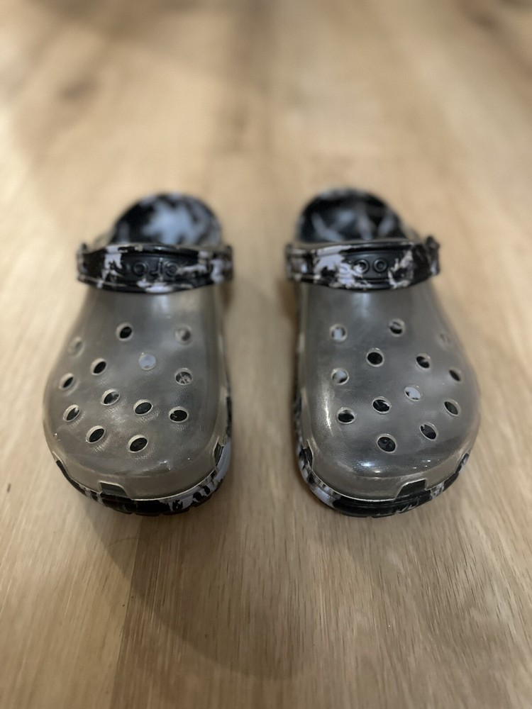 This pair of Crocs shoes is perfect for those who love the outdoors and want a comfortable, classic look. The slip-on clog style has a round toe and a flat heel, making it ideal for walking and school activities. The Mossy Oak camouflage pattern and the logo accents give it a stylish touch. The shoes are made of a blended fabric with rubber upper, insole, and outsole material, ensuring durability and comfort. It is available in a size 7 for women and 9 for men, and the shoe shaft style is low-top. The shoe is perfect for travel, activewear, and casual occasions, and it is suitable for all seasons.