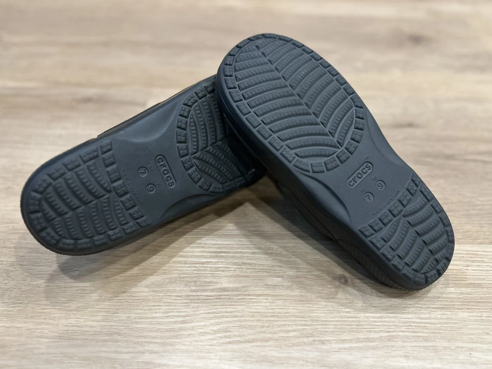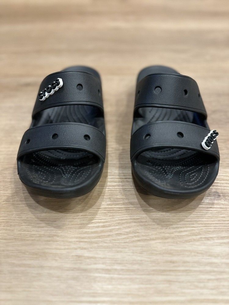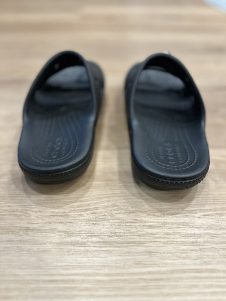 Experience the perfect blend of comfort and practicality with these Crocs Classic Black Slides. Designed with a timeless solid pattern and the iconic Crocs logo accent, these sandals offer a sleek yet understated style that's versatile for any casual or travel occasion. The synthetic upper material and lightweight design ensure a comfortable fit, while the durable rubber outsole and lining provide waterproof protection and long-lasting wear. These unisex slides are size 7 and feature a slip-on closure for easy wear. The breathable material and water-resistant capabilities make them ideal for those on-the-go moments or relaxed sunny days at the beach or pool. Complete your footwear collection with these reliable and classic Crocs that promise to deliver comfort and style without compromise.