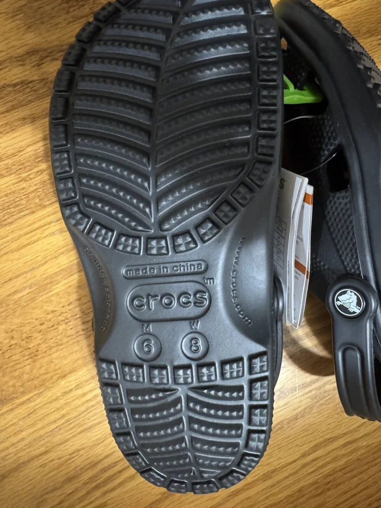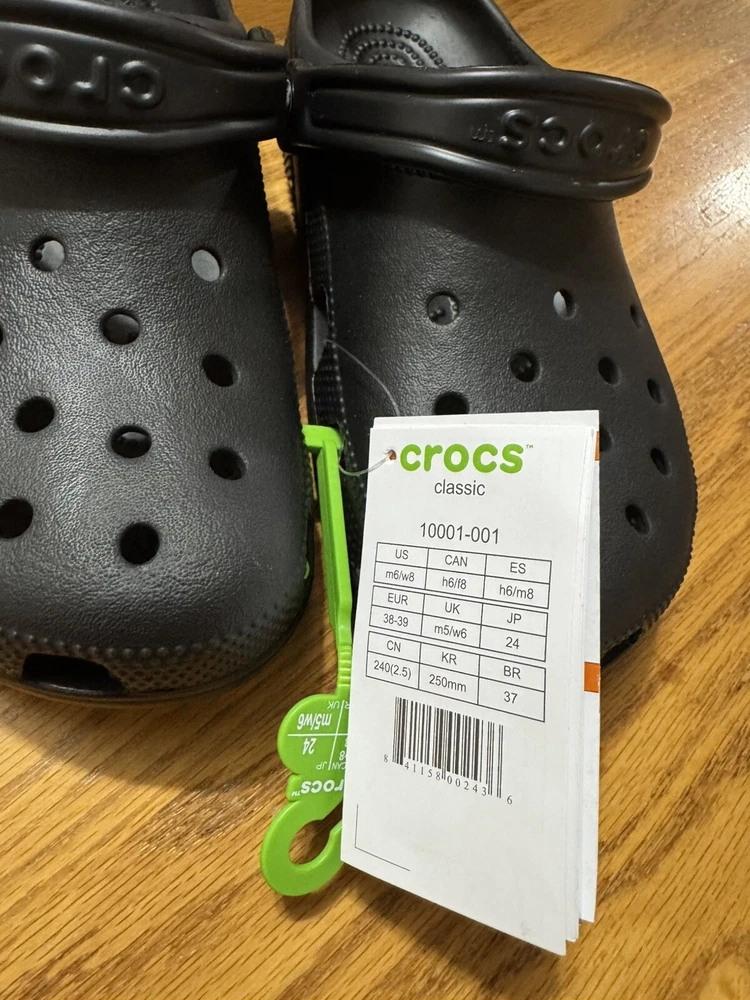 Style: Clog US Shoe Size: 6 Men 8 Women Department: Men Upper Material: Rubber Type: Casual Color: Black Brand: Crocs