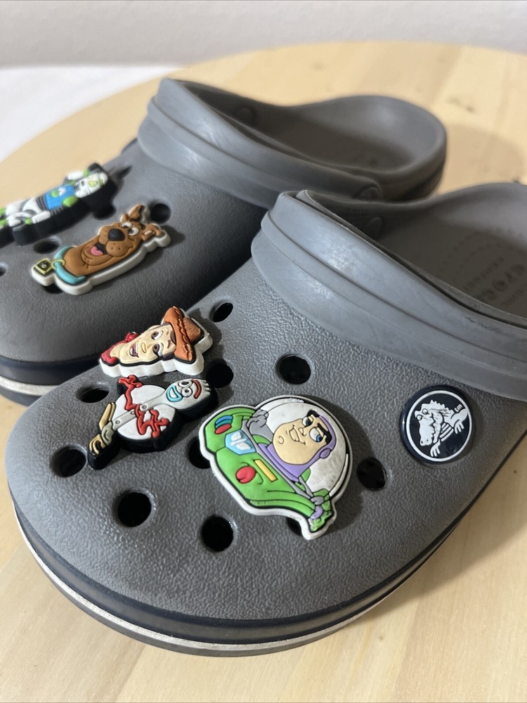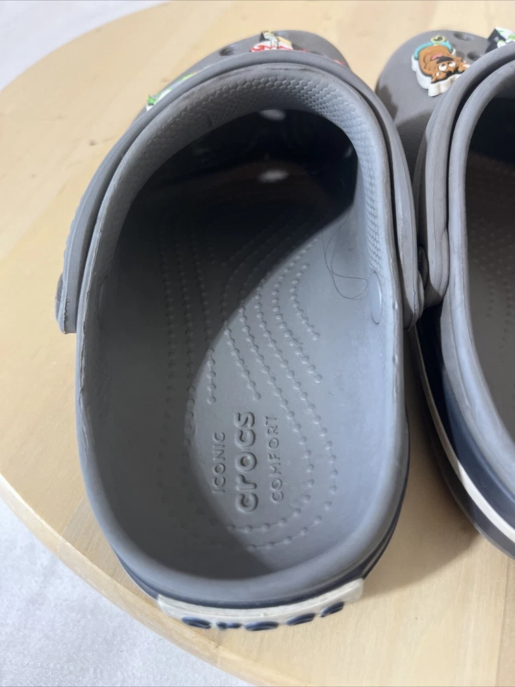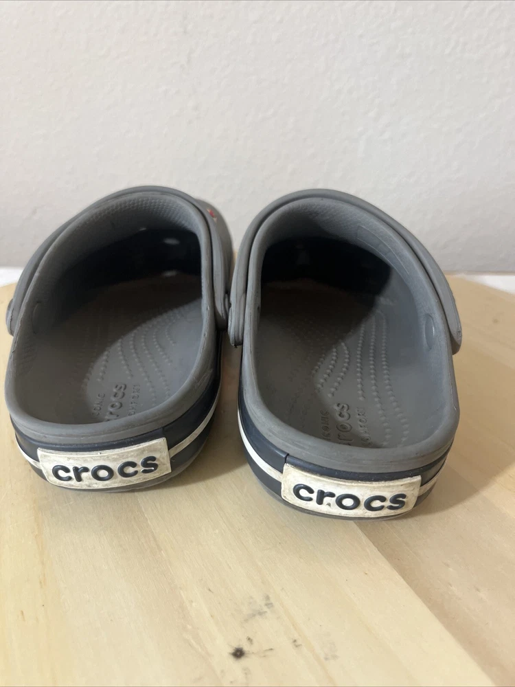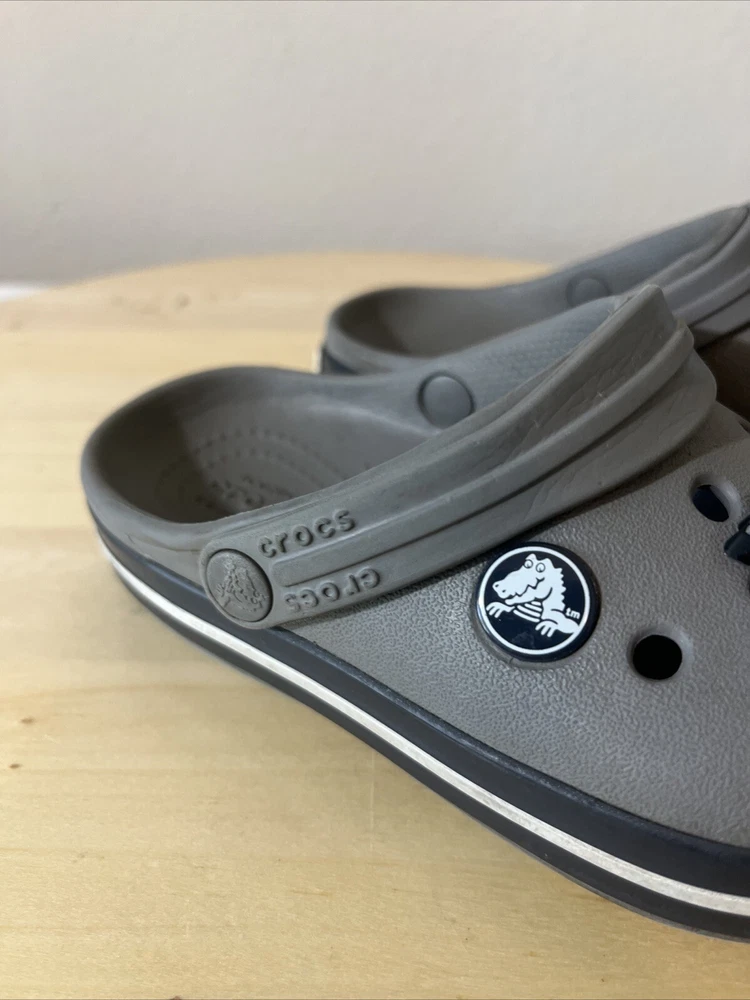 Elevate your child's summer footwear with these Crocs Unisex Classic Crocband Clogs in smoke gray. These slip-on clogs feature an almond toe shape and a low top shoe shaft style, making them a comfortable choice for casual occasions. The rubber upper material and lining material provide moderate cushioning, while the rubber outsole offers durability and traction. These Crocs Crocband Clogs come with Jibbitz Charms and are perfect for any child who loves the classic look. They are available in US 10 kids Get your hands on these athletic clogs, which are suitable for both boys and girls, and make them a part of your child's wardrobe today.