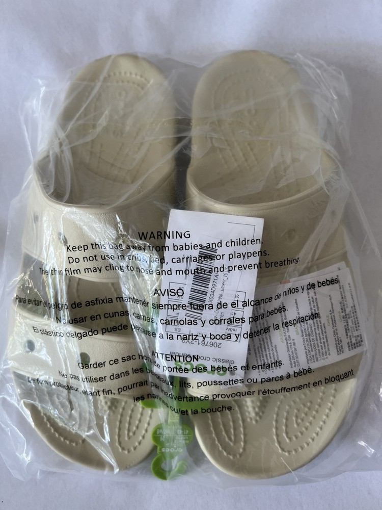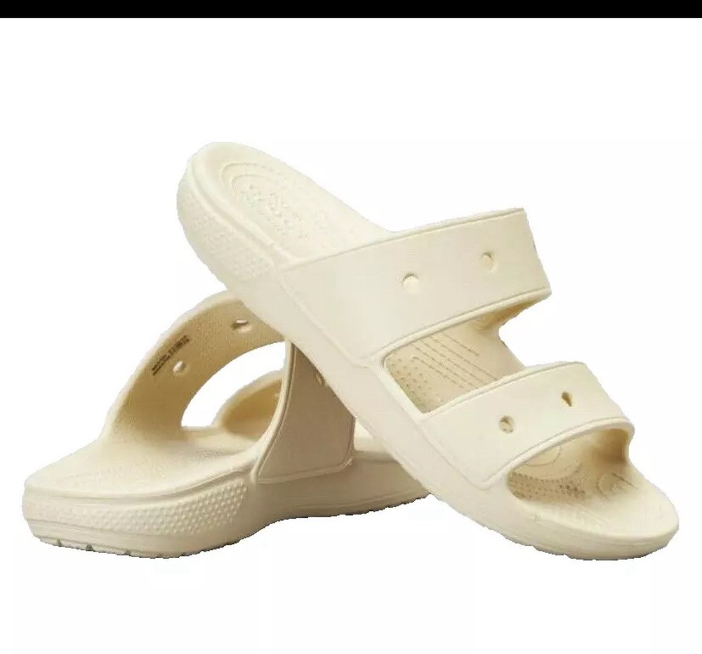 Crocs Unisex Classic Two-Strap Slide Sandals, Bone, Numeric_10 US Women