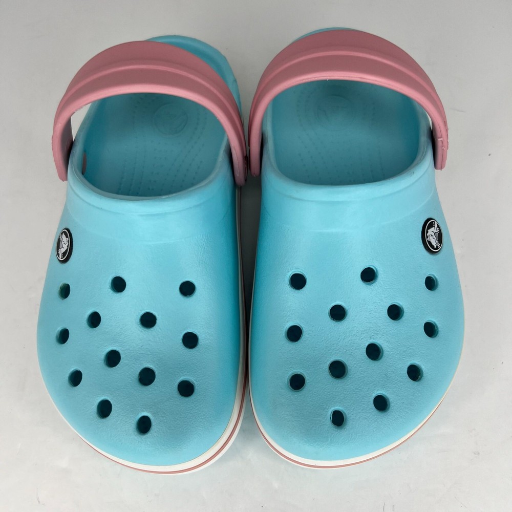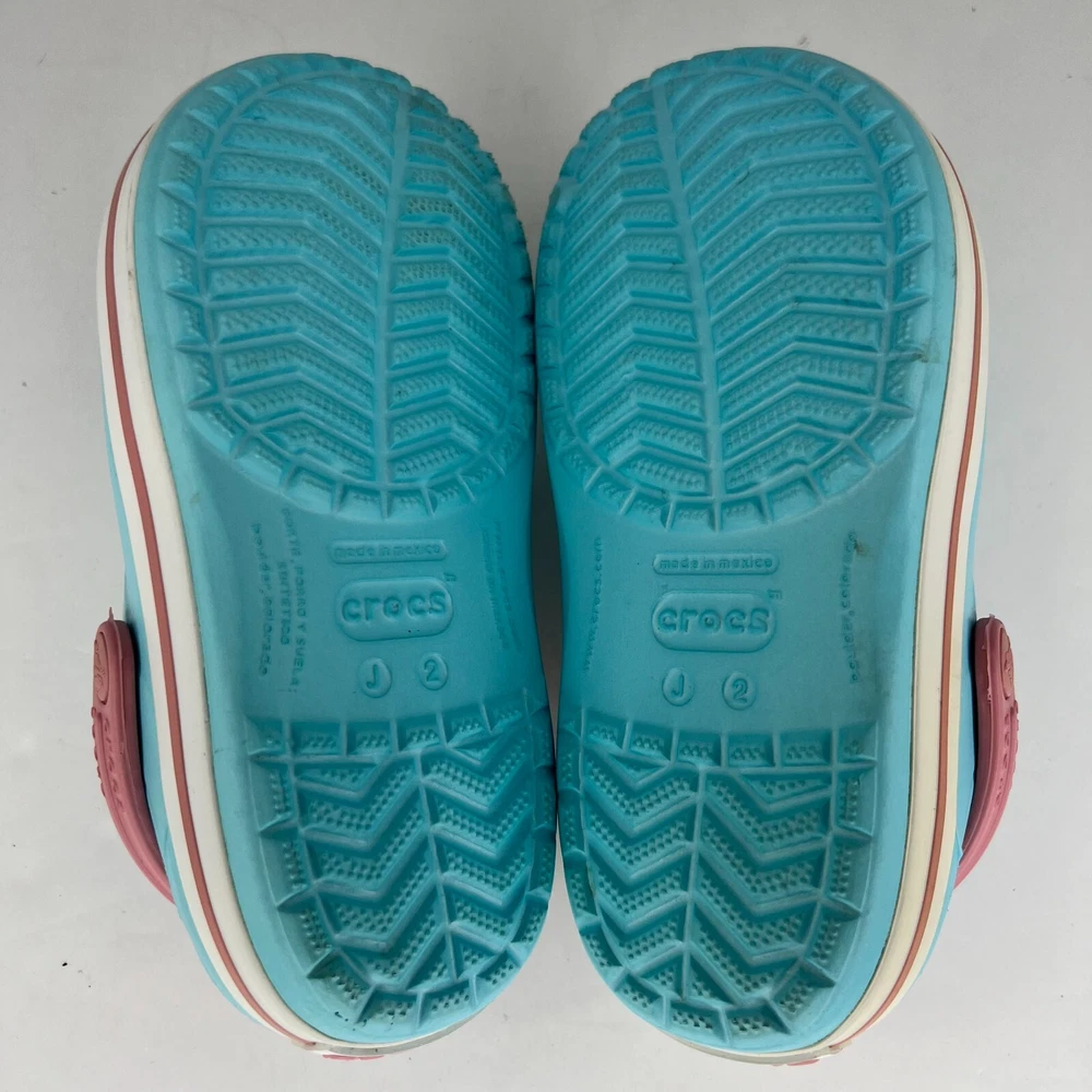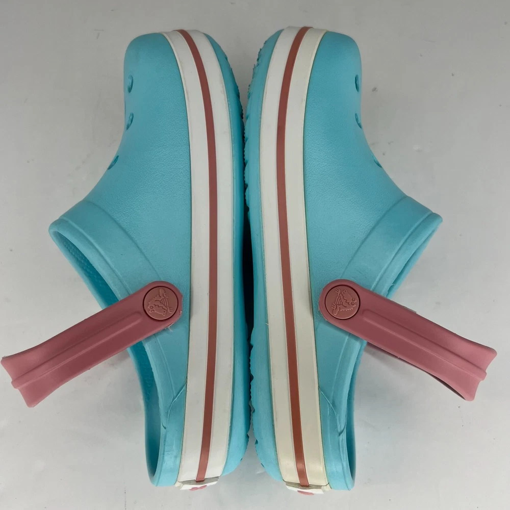 Step into summer with these classic Crocs Crocband sandals! The unisex design and ice blue pink color make them perfect for any occasion, whether it's a day at the beach or a casual outing. The slip-on closure and round toe shape ensure a comfortable fit for little feet, while the flat heel and rubber outsole provide traction for walking, fishing, and other activities. Crafted with a blended fabric upper and synthetic lining material, these sandals feature a solid pattern and clog style. The Crocs brand is known for their quality and durability, making these sandals a great investment for any child's summer wardrobe. Available in UK shoe size 1, US shoe size 2, and EU shoe size 32.5, these sandals are sure to be a hit with any young Crocs enthusiast. 100% CUSTOMER SATISFACTION IS OUR GOAL! Our items are always carefully examined for condition, measured if necessary, and photographed in a climate controlled and smoke-free environment. We make every attempt to accurately describe and clearly picture the items we have for sale. Please, ALWAYS view all of the photos. We value your business and our goal is your complete satisfaction. FAST SHIPPING All items are packaged with care and shipped out the same or next business day via USPS, FEDEX, or UPS with tracking numbers so you are always informed. RETURNS We offer a 30-day return policy. All items must be unused and unopened in the condition in which they were received, with original packaging, and all accessories included for return. REVIEWS - CUSTOMER SATISFACTION - COMMUNICATION We aim to make you happy. After you receive your shipment, please leave a positive review . If you have concerns or questions about your order, please contact us so we can resolve the issue. We will do our best to make you satisfied. THANK YOU FOR YOUR BUSINESS!
