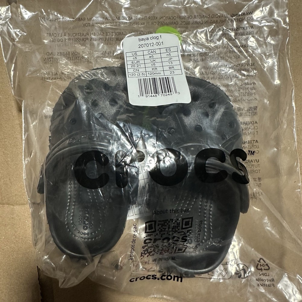 The Crocs Unisex Kids Black Baya Clog in C5 toddler size is a stylish and practical slip-on shoe perfect for summer and spring occasions. With a round toe, flat heel, and rubber outsole, these clogs offer moderate cushioning and are slip-resistant and waterproof. The adjustable strap and solid black color make them versatile for travel, activewear, and casual outings. The Crocs brand and rubber material ensure durability and easy maintenance, while the beach and sports themes add a fun touch to the design. Ideal for both boys and girls, these clogs are a must-have for active kids. These are all brand new and in the original croc bags! No flaws or conditional issues. Trusted seller with reviews behind my sales. Buy with confidence!