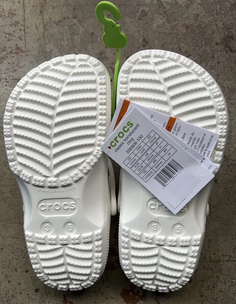 Crocs Unisex Men's and Women's Classic Translucent Clog, White, Size M3/W5