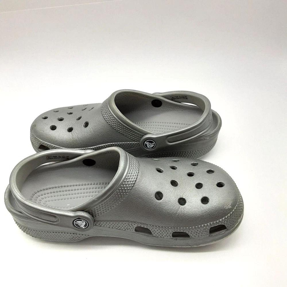 WE APPRECIATE OUR CUSTOMERS THANK YOU FOR SHOPPING WITH US!! Crocs Unisex Women's 8 Mens 6 Gray Classic Clogs Slip On Shoes *Please look at pictures as they are part of the description/details. *In Good Preowned Condition. *Thanks for looking! Terms and Conditions : Once a purchase has been made, it is legally binding contract. Payments: Payment is due when purchase is made, Thank you for your prompt payment. *If payment is not received within 4 days of purchase, then a Non-Paying Buyer Dispute will be filed, and eBay may mark it against your account. SHIPPING: We ship daily (Mon-Fri not to include holidays) and will ship within one business day of receiving payment! Upon Receiving : If you are satisfied with your product(s), please leave some positive feedback. *We love hearing that you have received your purchase(s), and are content, delighted, and untroubled. *Once you receive your purchase(s), please inspect them for any damage during transit. Report any damage within 24hrs via eBay e-mail. Return Policy : You may return unworn, unwashed merchandise in its original condition with all tags attached. If you bought a brand-new item, it MUST be returned brand new (Sealed and Any returns MUST be sent back to us complete and in the same condition as delivered to you Unopened). Items must be in new or original condition (free of odor, markings etc.) and ready for resale. Any serial or product numbers must match the purchased item for refund. PLEASE NOTE that shipping will not be refunded . Upon time of purchase, you are agreeing to this return policy. CHECKOUT: Please make sure that your address on file with eBay is complete and correct as we must use the address you have with eBay. *If you have any questions about your purchase, delivery, or a possible product return; Please contact us immediately and directly through your eBay accounts message center! *We are Eco-Friendly, leaving the lightest possible impact on our environment! Whenever possible we will reuse packing material to aid with our Eco goals. Customer service and feedback: If you have any questions about your purchase, delivery, or a possible product return; Please contact us immediately and directly through your eBay account message center! Your satisfaction is our top priority! Our goal is to earn your 5-star 100% feedback. Thank You for buying from us!