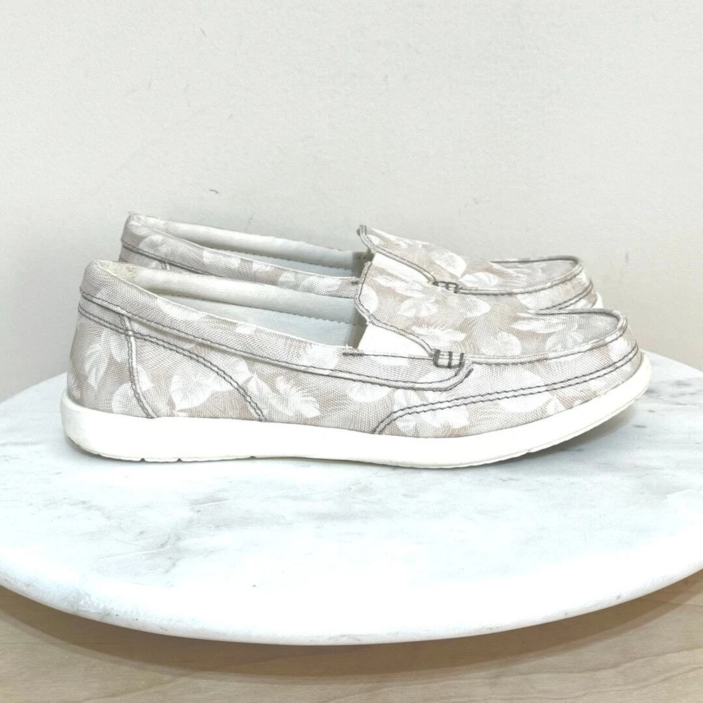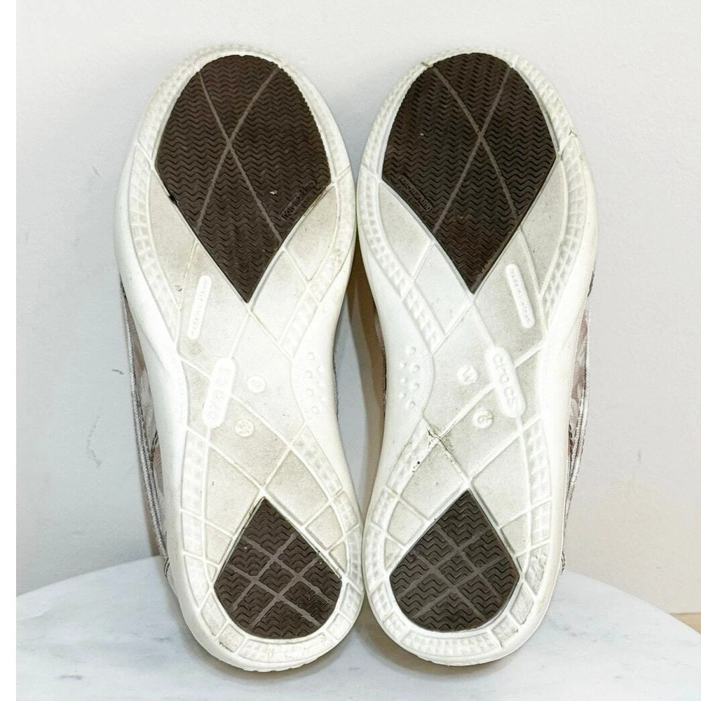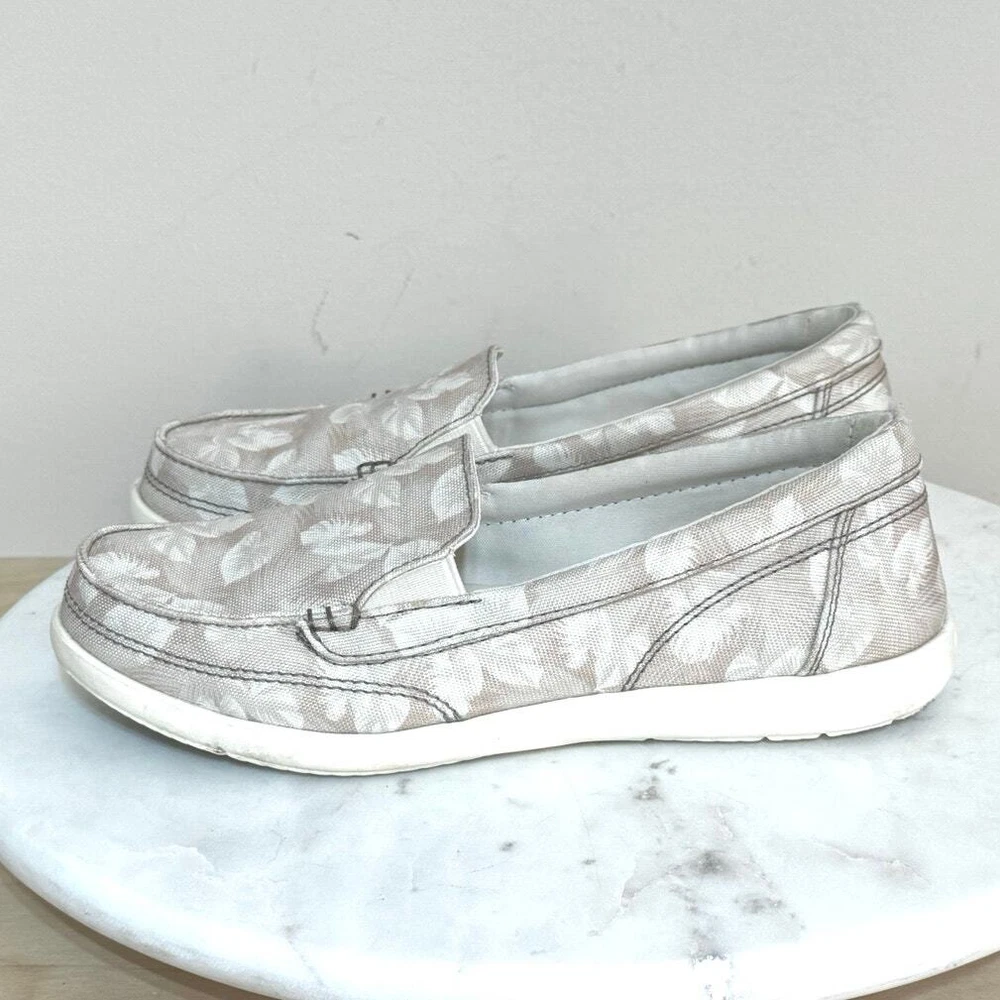 Crocs Walu II Women's Slip On Floral Canvas Boat Shoes Size 6 Beige & Ivory Print Canvas Upper Rubber Sole In excellent preowned condition No stains, rips, or holes Very clean! Shipped within one business day