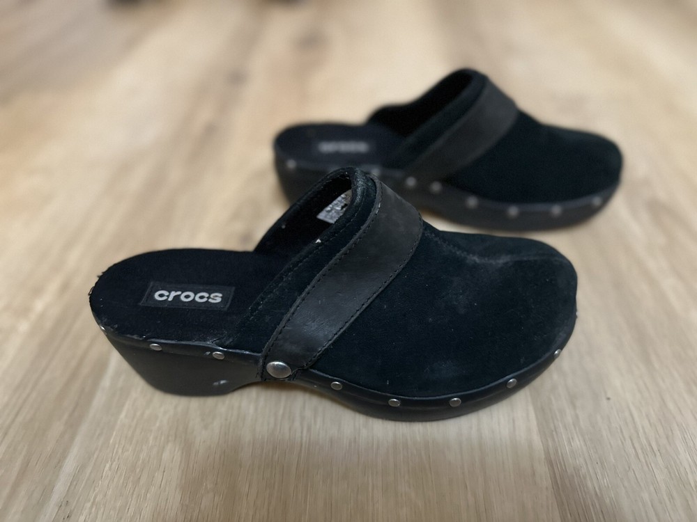 Elevate your comfort with these Crocs Women’s Cobbler Studded Comfort Clogs in size 9. The black color and solid pattern make them perfect for any occasion, whether it's for travel, casual workwear or school. The round toe shape and slip-on closure provide a comfortable fit, while the mid-height wedge heel adds a touch of style. The clogs are made of a blended fabric with studded accents and a low-top shoe shaft style. The faux leather insole material and synthetic outsole make them durable and comfortable. The clogs are perfect for all seasons, including winter, summer, fall, and spring.