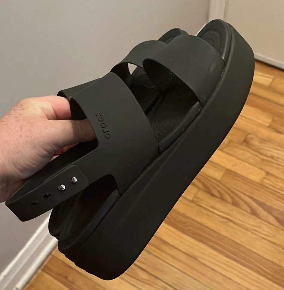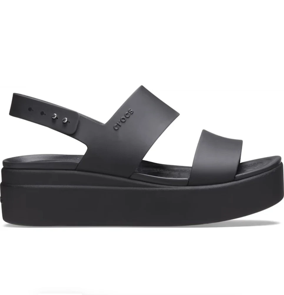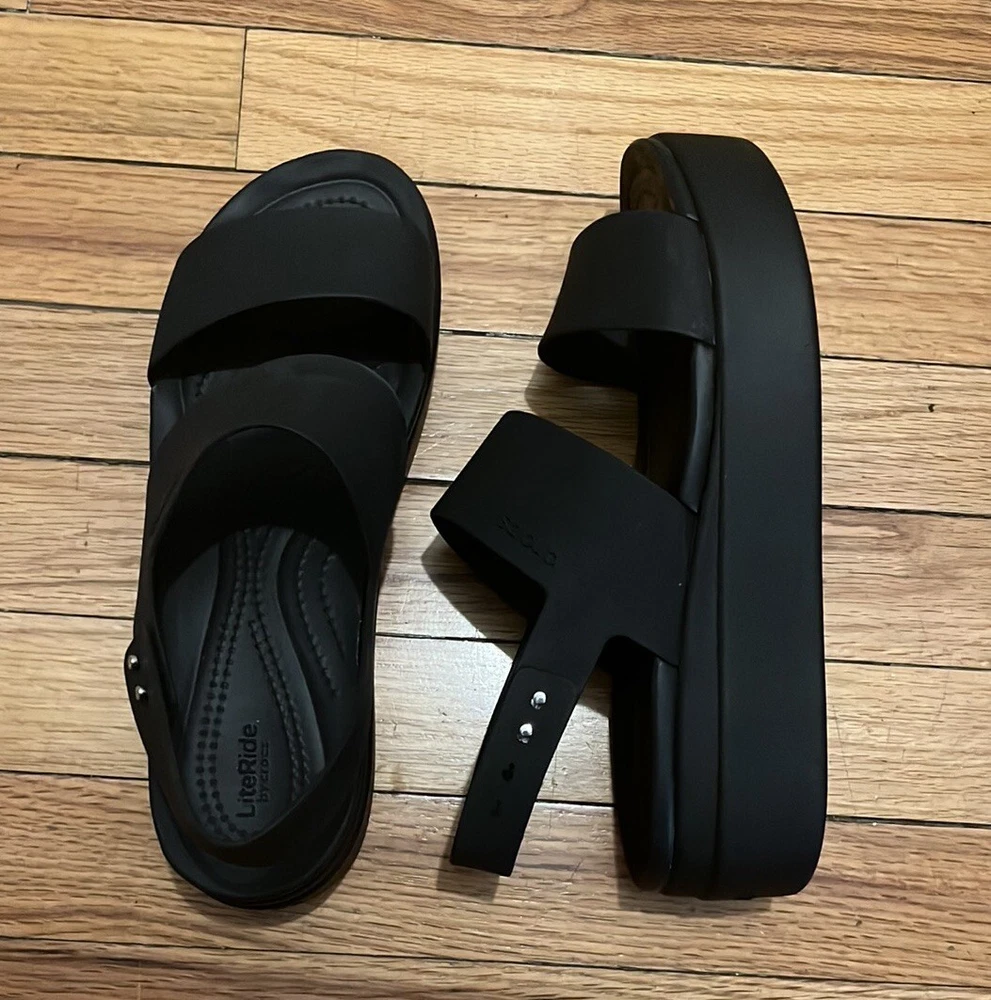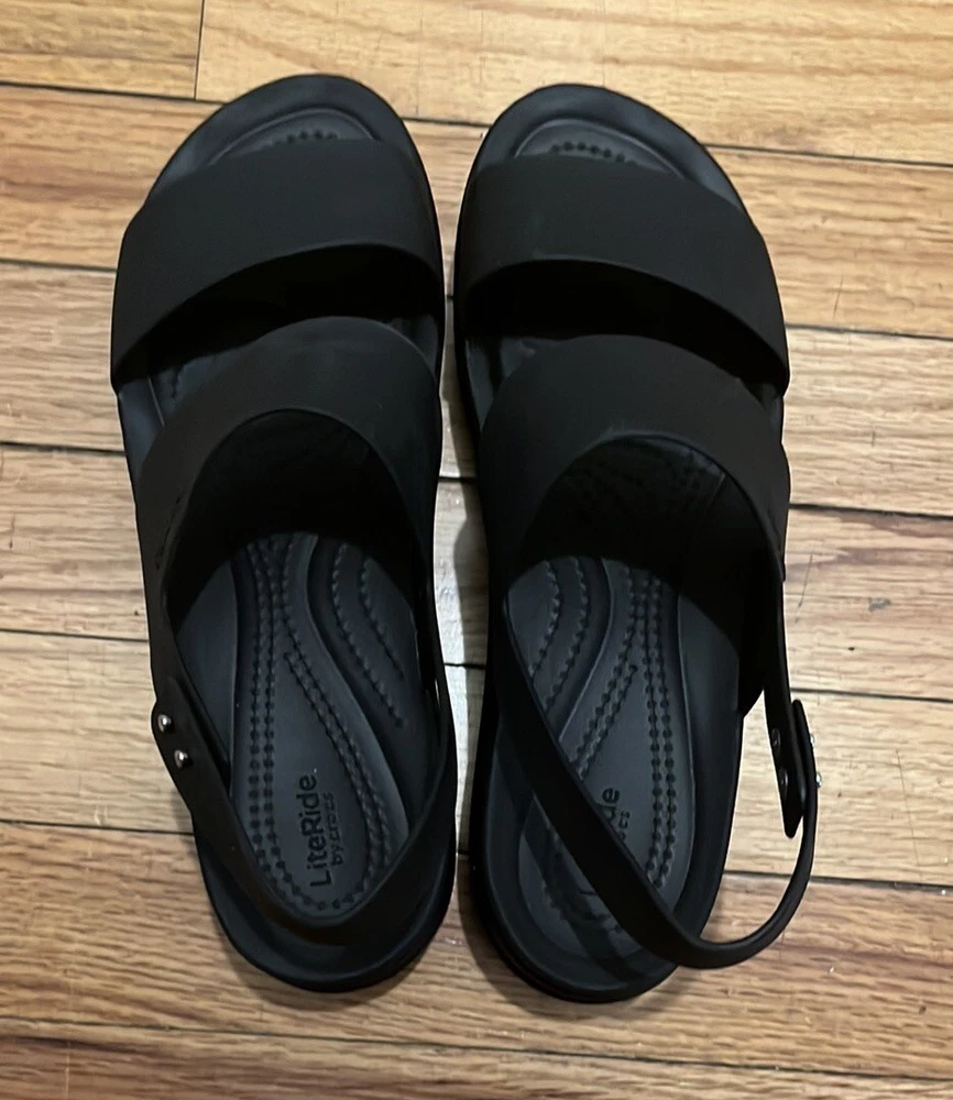 Crocs Women’s Brooklyn Low Wedge Sandals 9 Black . Condition is Pre-owned. Shipped with USPS Ground Advantage.