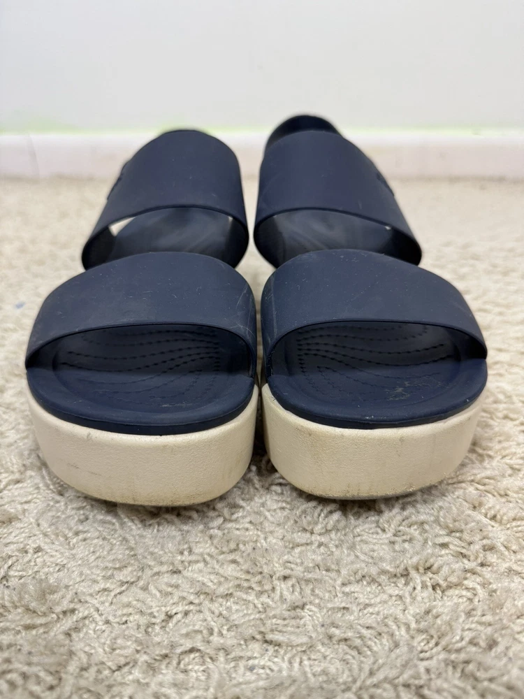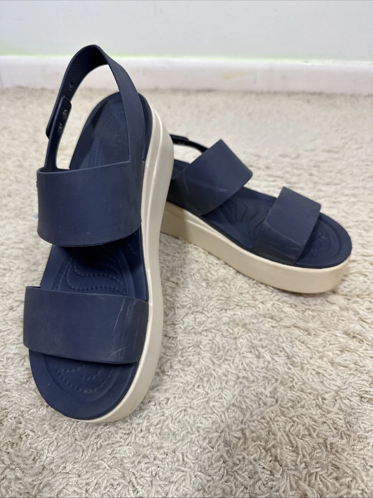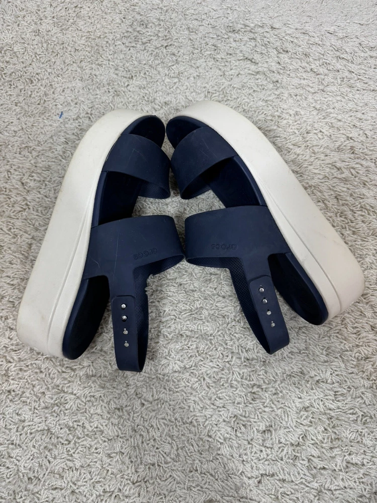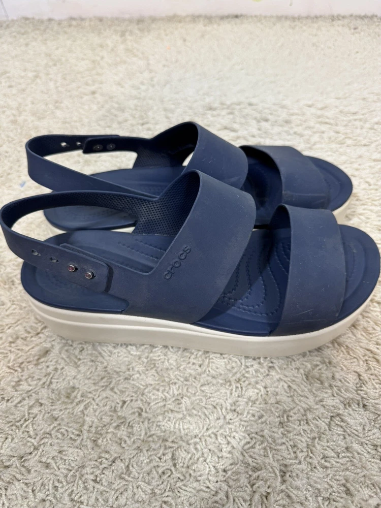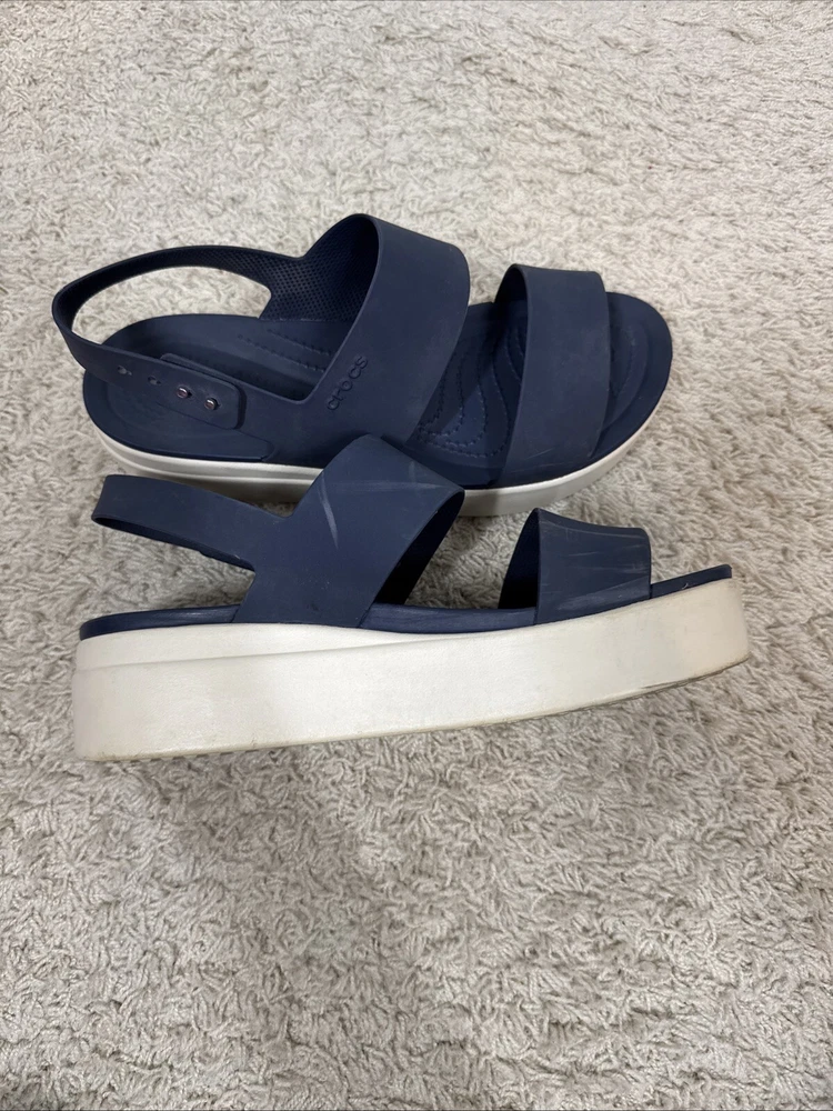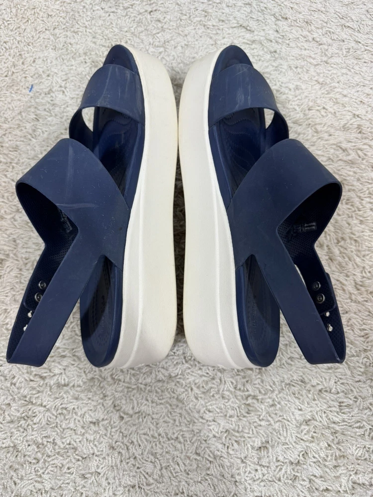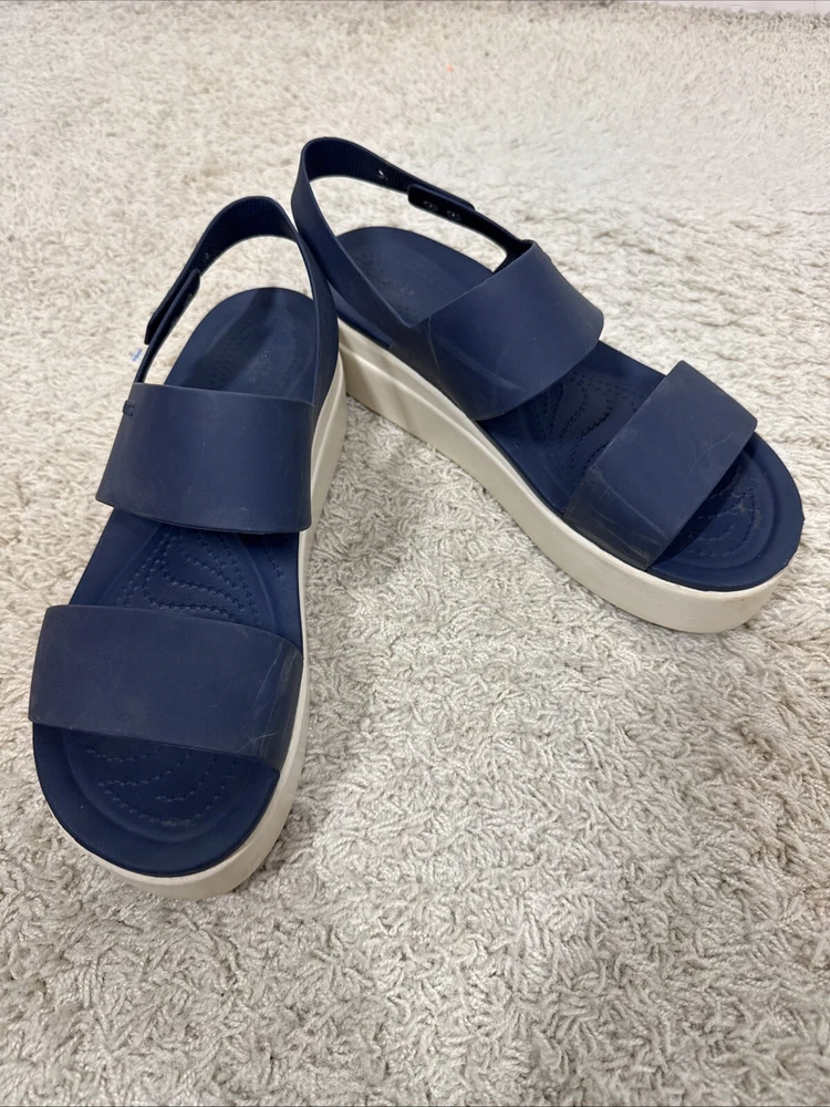 Crocs Women’s Navy Blue Brooklyn Wedge Platform Comfort Sandals Shoes Size 10