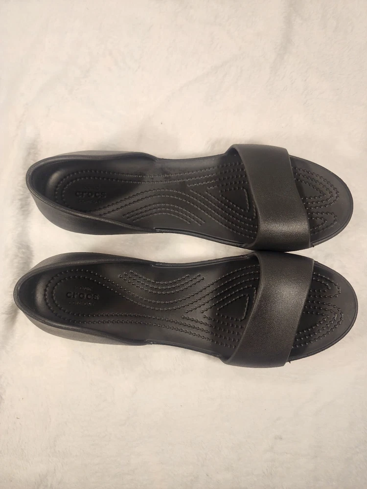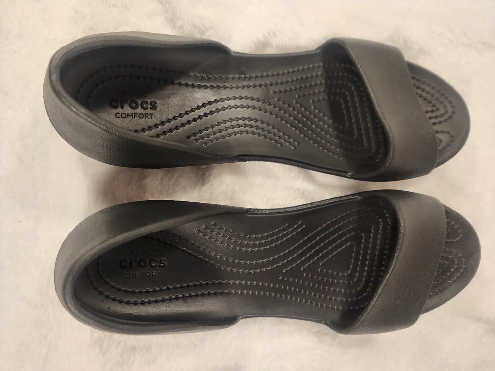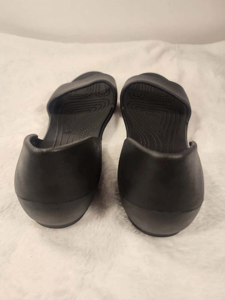 These black Crocs slip-on sandals are perfect for women who prioritize comfort and practicality. The lightweight and breathable features make them ideal for travel and casual wear during the summer, fall, and spring seasons. The synthetic lining material and low heel height provide a comfortable fit for all-day wear. The rubber upper material and solid pattern offer a classic and versatile look that can be paired with any outfit. These sandals are perfect for women who want a reliable and comfortable shoe option without compromising on style.