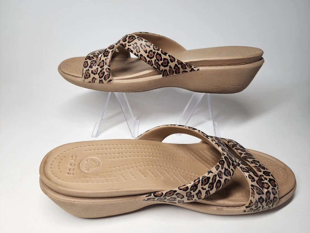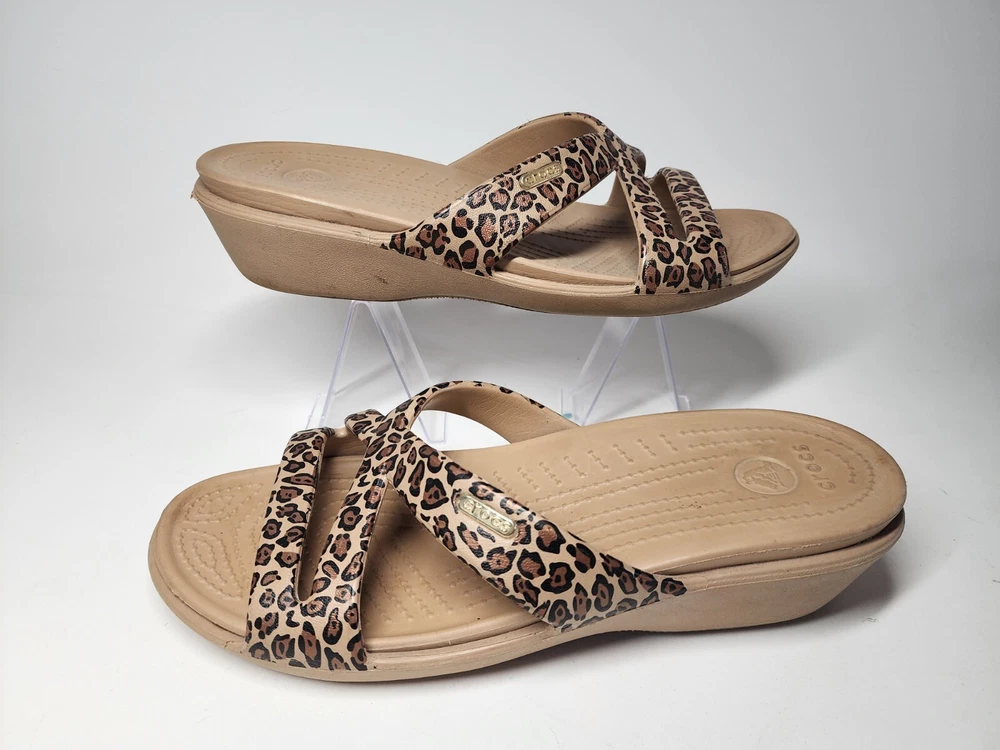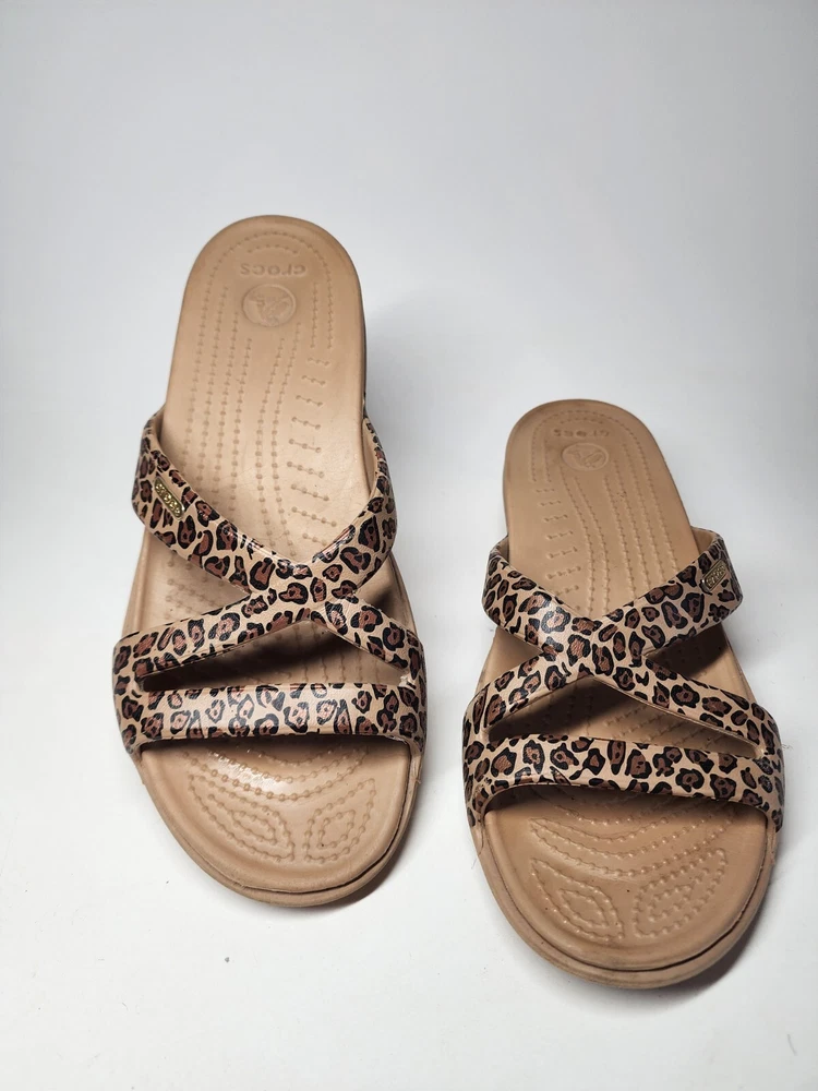 Crocs Women's Size 9 Patricia Wedge Cheetah Sandals Slip-on Comfort Summer