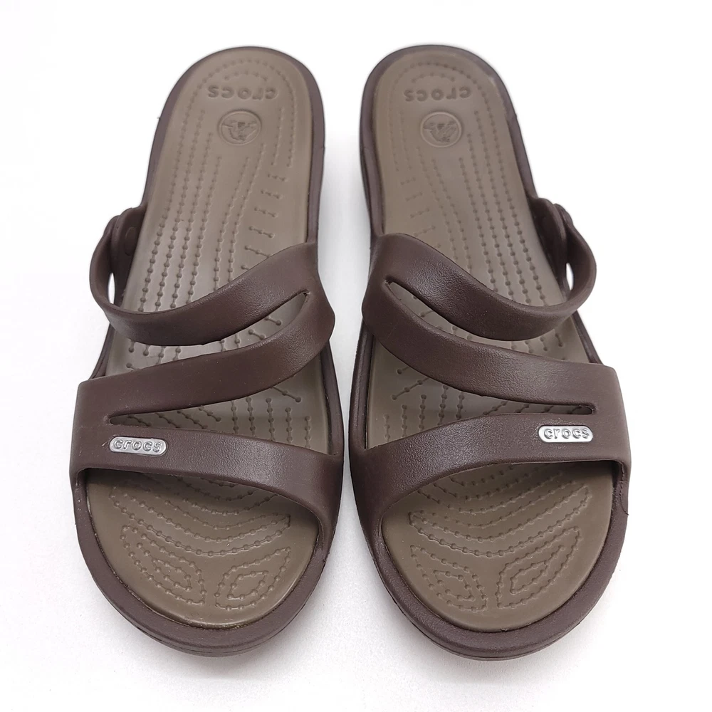Crocs Womens Swiftwater Brown Slip On Rubber Flats Size W 9 Strappy Sandals All Items are Packaged with care and shipped within one business day or sooner. Thanks for Stopping by!