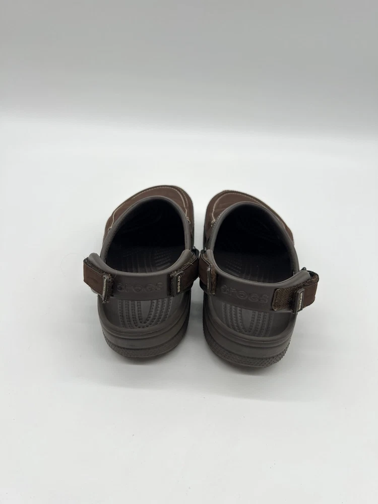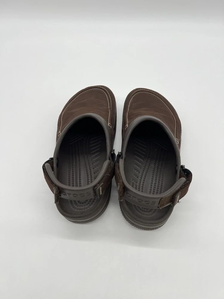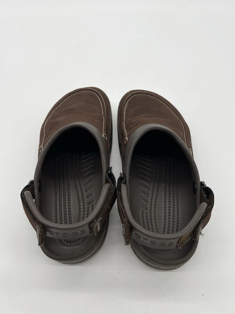 Crocs Classic Yukon Vista Men’s Size 9 Chocolate Brown Leather Slingback Clog. Shoes are in used condition and have signs of wear but shoes are still in great condition. Upper material is in great condition and very clean , inside is clean and the soles are in great condition. Nice comfortable shoes for casual wear. Condition is pre-owned. Shipped with usps priority mail. Sold as pictures. Thank you! Feel free to message me for any questions. Thank you