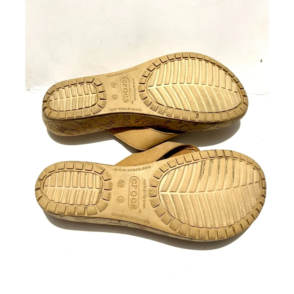 Crocs sandals slide on wedges comfort shoes beige summer women's 9 it has a couple stons missing in the flower. See the last pic