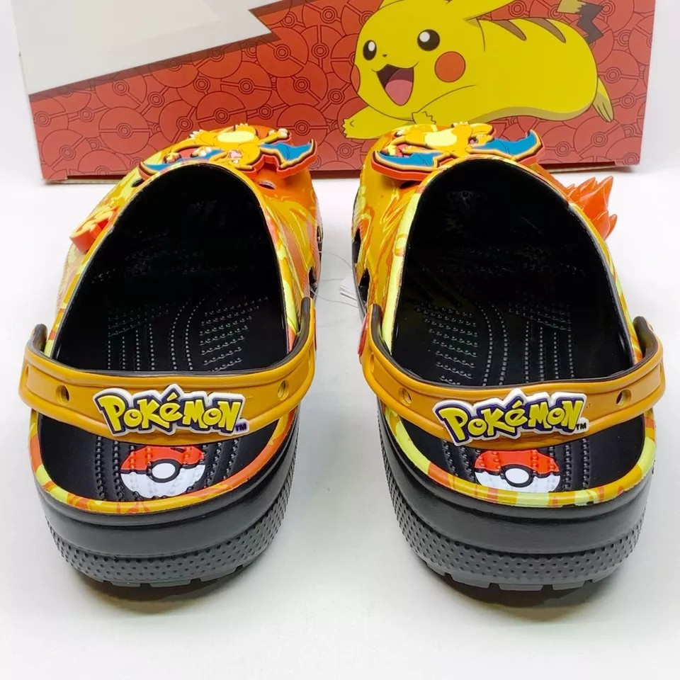 Crocs x Pokemon 'Charizard' Classic Clog sandals in a vibrant multicolor design. These slip-on sandals feature a synthetic upper material with a synthetic outsole, making them both comfortable and durable. The Crocs Classic product line ensures quality and style, perfect for any Pokemon fan. Available in various US shoe sizes for Unisex Adults, these sandals are a must-have for any collector or fan of the iconic Pokemon franchise. Don't miss out on adding these unique and eye-catching sandals to your collection today!