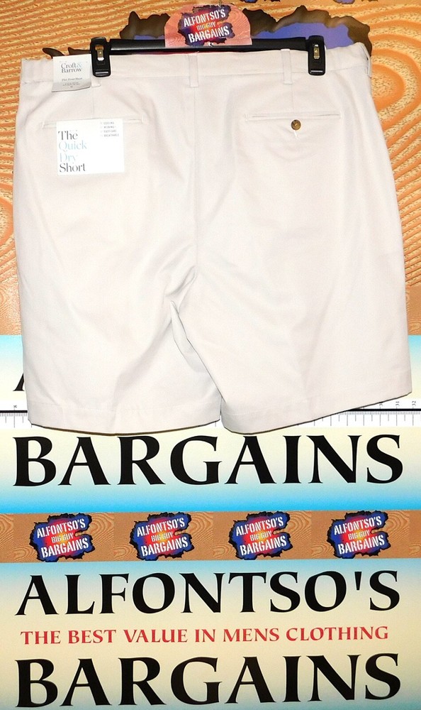 The Croft & Barrow Quick Dry Flat Front Shorts in size 42 are perfect for golf enthusiasts. Made from 100% polyester with a solid pattern, these shorts feature a flat front design, zip and button closure, and belt loops for a comfortable fit. The quick dry and moisture-wicking features make them ideal for a day out on the golf course, while the breathable material ensures you stay cool and comfortable during your game. With a flexible comfort waist and a generous 8.5-inch inseam, these shorts offer both style and functionality for all your summer and spring golf outings. Croft and Barrow 4 Pocket Flat Front Shorts with two rear button close pockets Fast drying. Elastic Flex Comfort Waistband. Has two concealed elastic expanders adds approximately 4 inches waist expansion. Great for golfers! Zip up fly with button closure. Easy Care Machine Washable. 8.5 inch inseam hits above knee. Belt loops for external belt. Stock photos representative of style and color, not size.