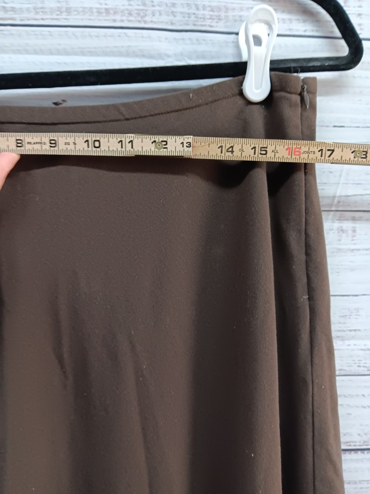 This Croft & Barrow skirt is designed for women in size 14, featuring a brown plaid pattern and an A-line style. Made from a blend of polyester, spandex, rayon, and wool, the skirt is lightweight and stretchy, ideal for travel, casual, or business occasions. It has a zip closure and falls to a midi length, with a woven fabric type ensuring quality. Easy to care for, this versatile garment adds a touch of sophistication to any outfit.
