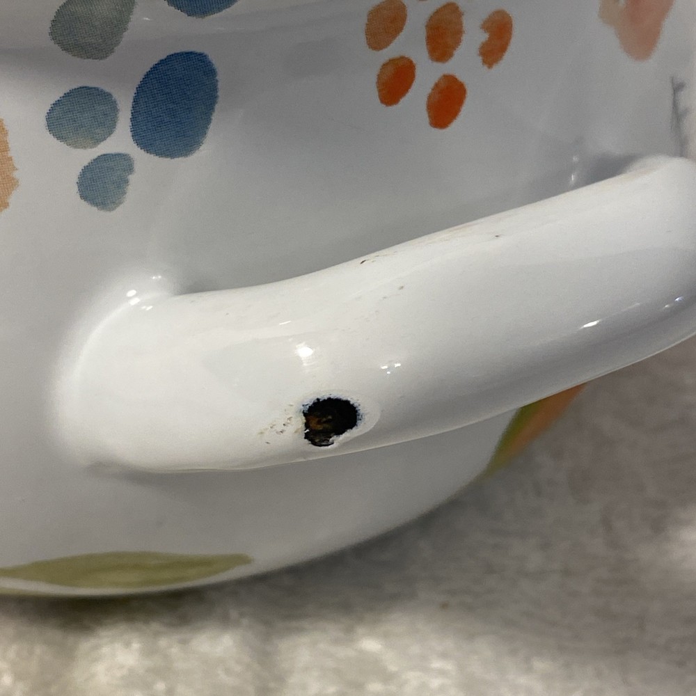 Crofton Casserole Pot Dutch Oven 1 Qt. Floral Enamelware Double Handle w/ Lid. Condition is Used. Shipped with USPS Ground Advantage.