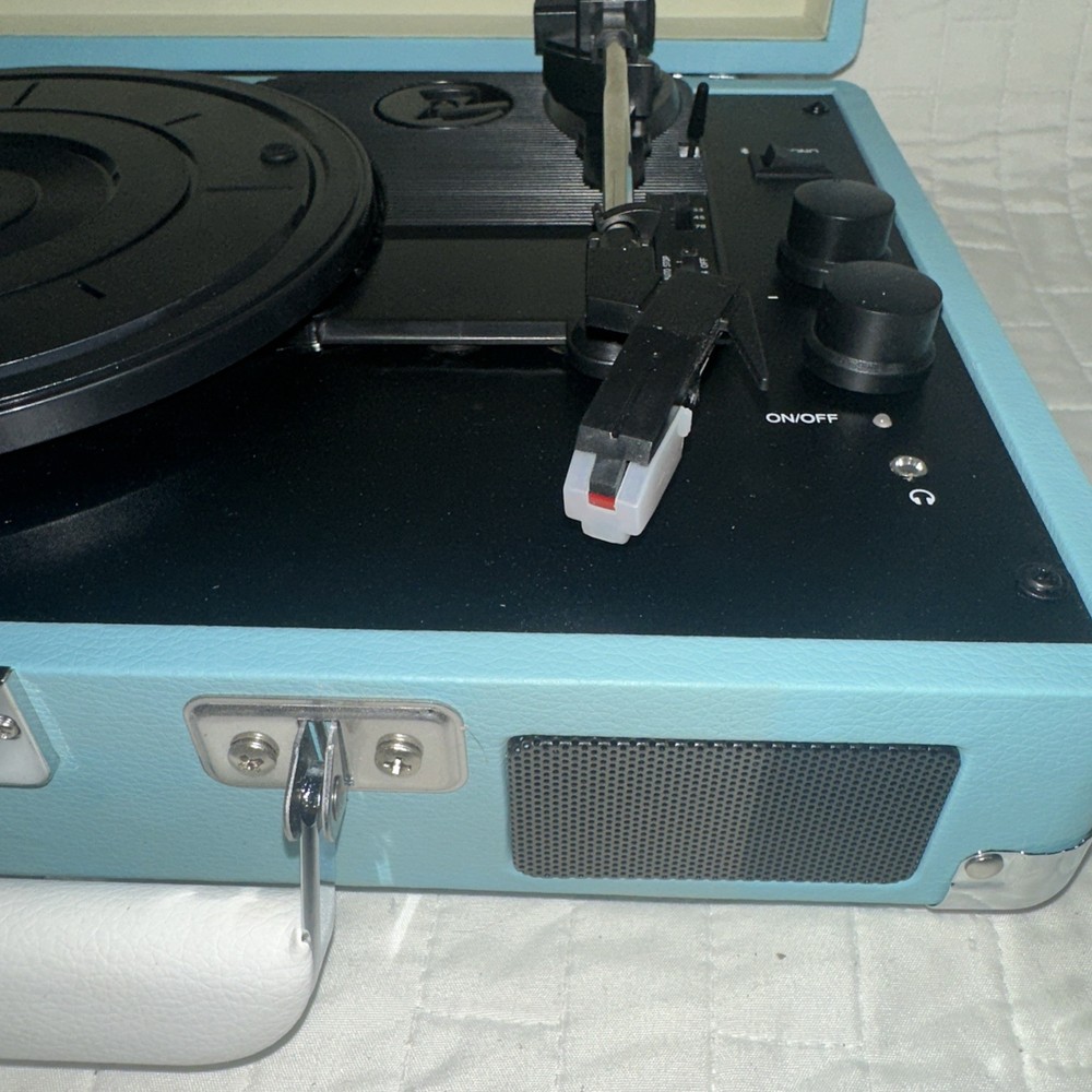 The Crosley Cruiser Deluxe 3 Spd Bluetooth Speaker/Record Player Cr8005d-tu in Turquoise is a versatile media player that combines classic turntable functionality with modern Bluetooth connectivity. With speed settings of 45RPM, 33.3RPM, and 78RPM, this model allows for playing vinyl records with precision and ease. The Bluetooth feature allows for streaming music wirelessly, while the headphone jack and digital coaxial RCA outputs provide various audio output options. The sleek design, featuring a tourmaline color and compact dimensions of 4.72 inches in height, make this Crosley turntable a stylish and functional addition to any home audio setup.