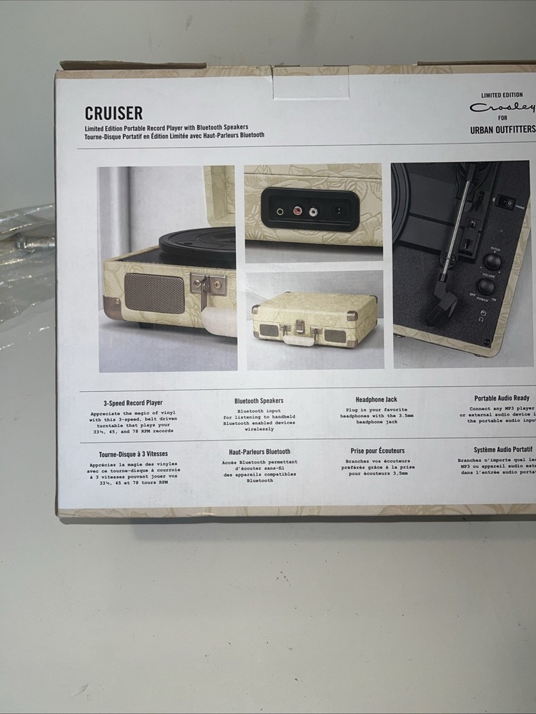 Crosley CR8005U-026A Cruiser Portable Deluxe Turntable w/box Tested Works VL03. Shipped with USPS Ground Advantage.