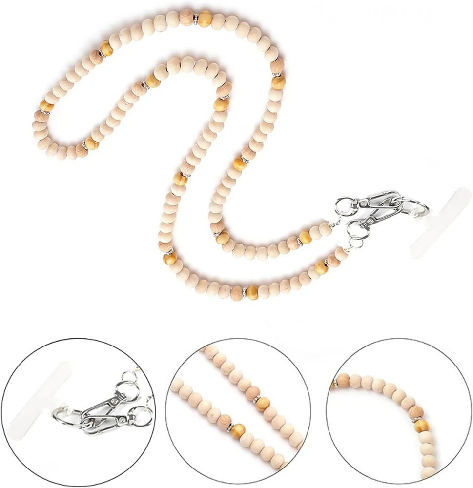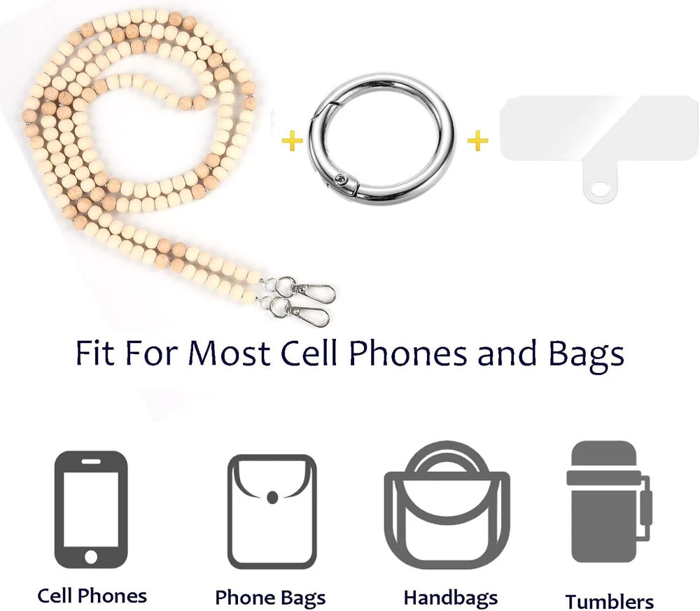 【Removable Cross Body Strap Phone Lanyard & Wrist Strap】- The phone lanyard is great for when you want to keep your hands completely free and on the go if you are outdoors walking, hiking, shopping etc. The lanyard is easily to fit around your shoulder or across your body, so it is safe and secure. 【Up to 59" Long Strap】Our straps length is 59 inch, can be paired with different body shapes and clothing. Full Beads: Our straps patched with wooden beads, Enhance your interior look and makes your phone or bag more stylish Bag Strap: New Fashionable design, fashion beaded style strap renew your bag (Suitable for most of the chain bags Small Crossbody Bags Satchels Shoulder Bags Messenger Bags) Note: If it be used on the phone, the phone need with a phone case or ring to hang the strap; If it used one a bag, make sure your bag has hole or ring to hang the strap