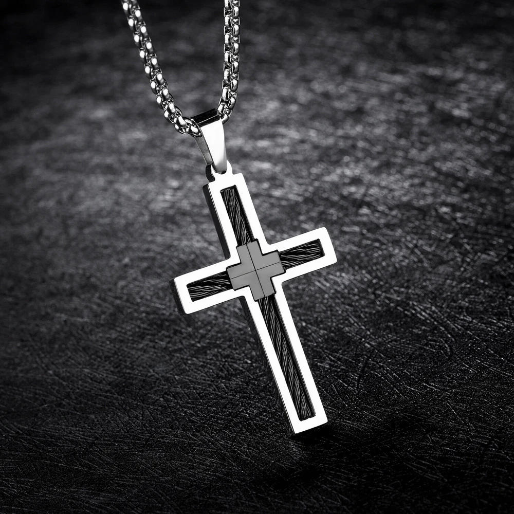 Cross Men's Necklace Material: White steel Color: silver, gold, silver and gold mixed Weight: 25 g Chain length: 550mm