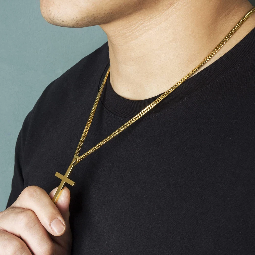 Material: Cross necklace for men, both cross pendant and chain used premium 316L stainless steel, oxidation resistant, never get tarnished or change color. Lead free and hypoallergenic, no irritation for sensitive skin. With smooth box chain and sturdy clasp, gold cross necklace is comfortable to wear. Size: Plain cross pendant length 1.57 inch, width 1 inch, thickness 4mm. High polished and shiny on both sides of cross. Cross necklace chain length 18 inches, width 3 mm. Strong and smooth edge gold cross necklace with flexible lobster clasp. Cross Necklace: Stainless steel gold cross necklace is waterproof, can wear it when taking a shower or swimming. Cross necklace is comfortable to wear and cross pendant combines perfectly with other necklaces. Perfect Gift: Cross necklace for men can be dressed up or down for any occasion is best gifts for men on Christmas, mother’s day, Valentine’s Day, fathers' day. And you can wear mens cross to bachelor party, wedding, anniversary graduation. After Sales Service: Free exchange or full money back within 90 days if you are not satisfied with stainless steel cross necklace. Feel free to contact us if you have any questions.