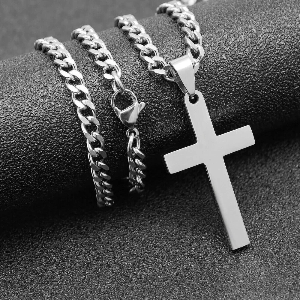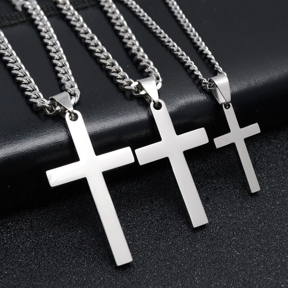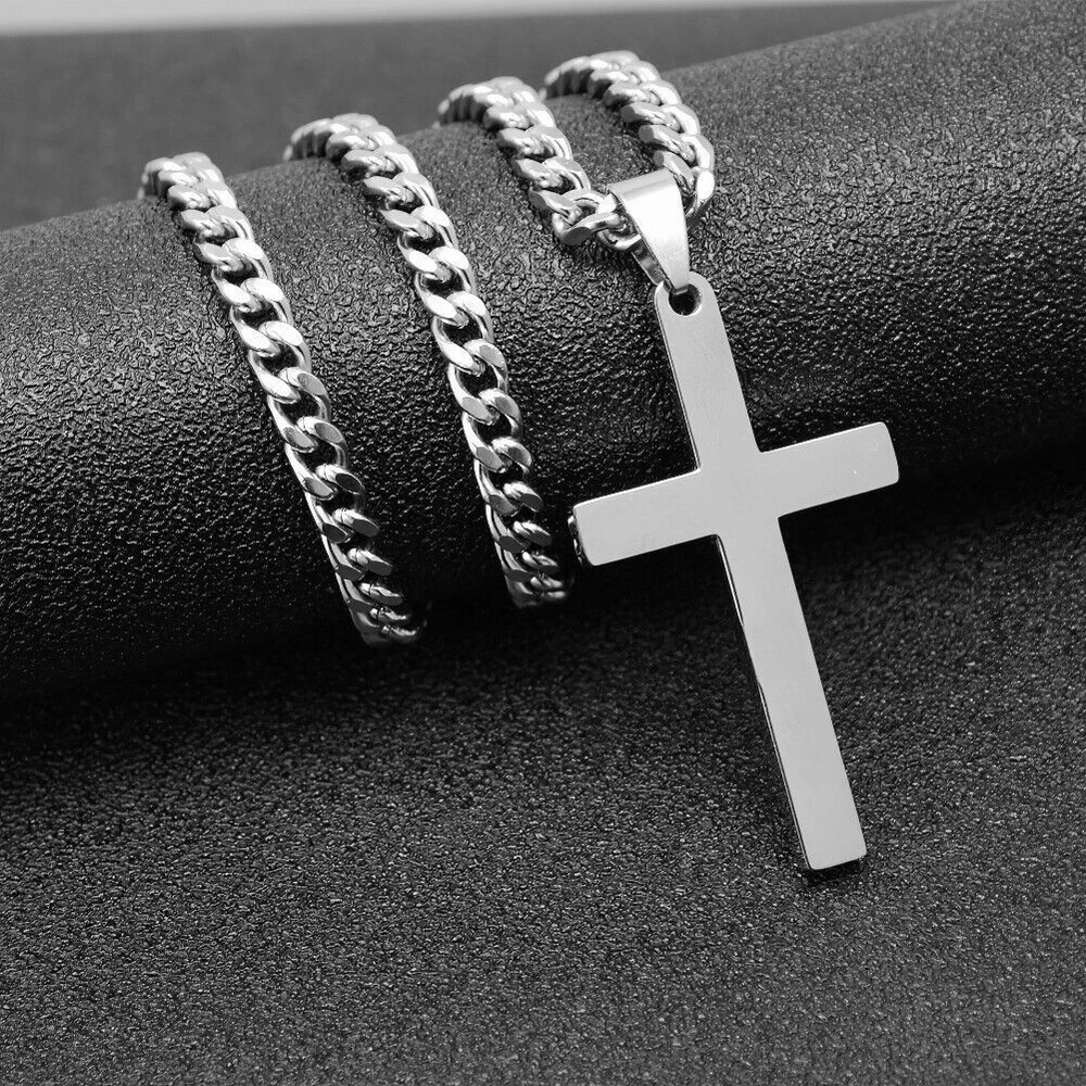 Brand: Unbranded Chain Type: Cuban Link Theme: Biker, Hip Hop, Punk Features: Nickel-Free Style: Chain, Pendant Secondary Stone: No Stone Main Stone: No Stone Color: Silver Metal: Stainless Steel Base Metal: Stainless Steel Occasion: Birthday, Christening, Christmas, Confirmation/Communion, Graduation MPN: Does not apply Material: Metal Shape: Cross Type: Pendant Closure: Lobster