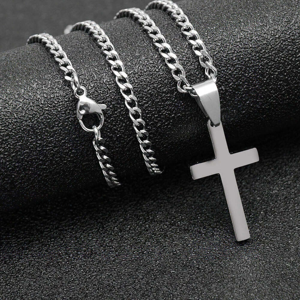 Cross Pendant Necklace for Men Women Boy Stainless Steel Cuban Curb Chain Gfit