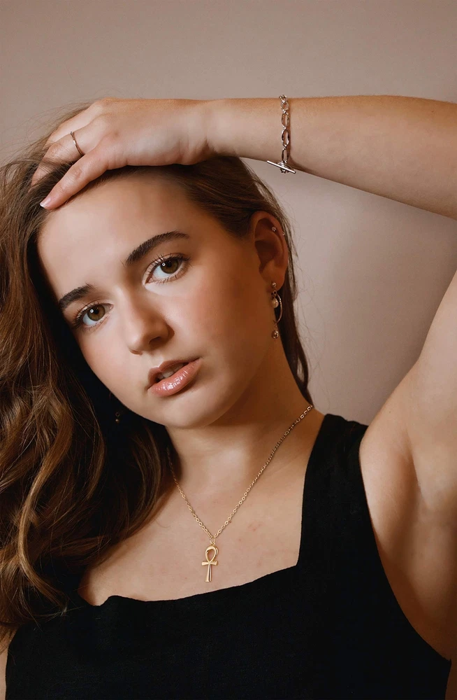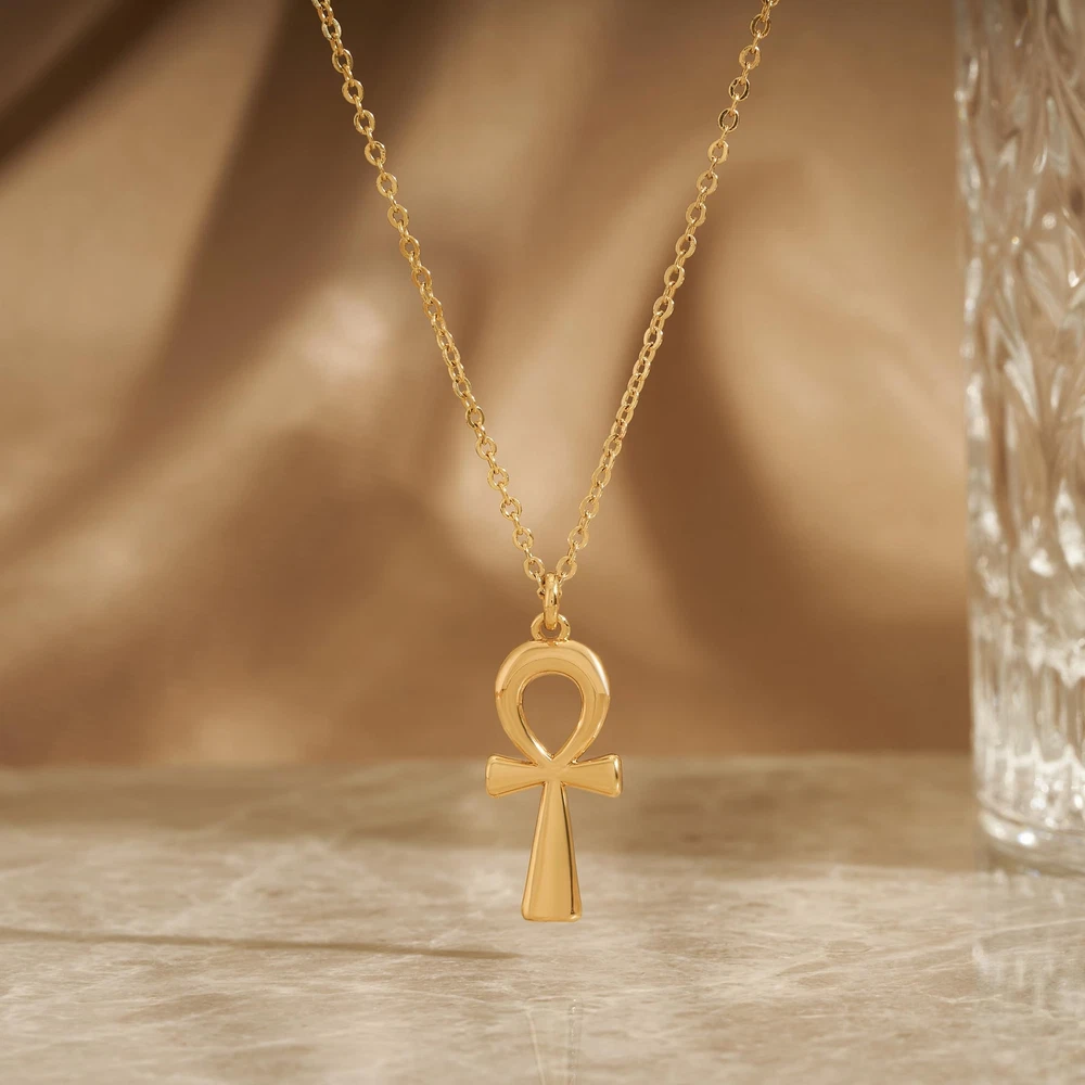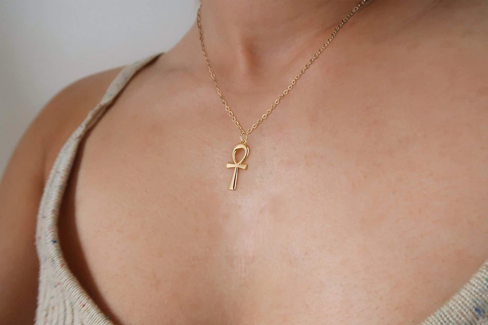 Jewelry Meanings:The evil eye is a popular amulet symbolizing a protection against bad luck.Classic and everyday-worthy, this necklace executes an elegant touch of sparkle that's subtle enough for everyday wear and for fancier occasions alike. Jewelry Details:Metal:18k gold plated over high quality brass.Weigt:About 4g.Package:Packing with a beautiful gift box,and the size is 3.0*2.7*0.7 inches. Jewelry Maintenance:1) Avoid direct contact with heat, or expose under the sun.2) Before showering, take out the accessories and keep it in a safe place.3) Avoid solvents or chemicals like perfume or soap. Dry it with a clean towel if gets wet.4) Clean in a secure location, not the rim of a sink where a piece may slip down the drain.5) Use only a soft brush, never sharp or hard objects, to remove dirt or particles. Warm Tips for you:Please check size reference images before ordering.Our necklace may be slightly different due to the display.★ 90-Day Money Back Ensure or Exchange,Ensure you a pleasant shopping from . Don’t hesitate to add it to your cart and buy Now!! Size Information: Chain length 18" + 2" extension; pendant: 9.3 mm wide, 22.3 mm high Meaningful Design: This gold ankh necklace represents life and spirituality; its unique and intricate design makes it a striking addition to any jewelry collection Premium Materials: Crafted from 14K gold plated, hypoallergenic, and nickel-free materials, ensuring comfortable wear for sensitive skin Ideal for Presenting: This exquisite jewelry is suitable for any occasion—daily wear or formal events; it makes a thoughtful offering for any adult woman, such as your mom, sister, daughter, best friend, or lover; at , we craft modern, stylish, and minimalist jewelry that can be combined with other accessories for a unique look Durable & Easy to Maintain: Designed to last, with tarnish-resistant and sweat-proof properties; to maintain its shine and longevity, avoid exposure to cosmetics and clean gently with a soft cloth