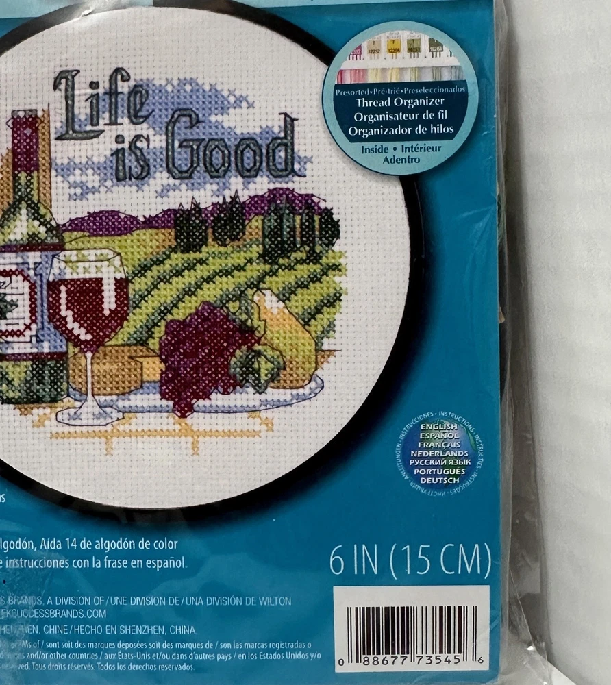 Cross Stitch Kit w/ 6" Round Frame "Life is Good", Dimensions Learn a Craft. New in Package.