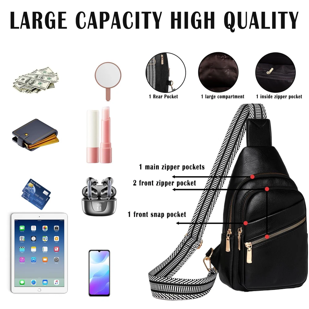 Description Cross Body Bags for Woman Men Crossbody Handbags Women's Crossbody Bags Sling Bag Chest Bag with Adjustable Strap ❀ 【DURABLE MATERIAL】: cross body bags for woman men is made of high quality artificial leather, soft texture, comfortable to wear, waterproof, anti-scratch, lightweight, easy to clean and so on.crossbody bag with smooth zipper is both practical and beautiful, no odor, durable, and can be perfectly matched with a variety of outfits.crossbody handbags sling bag has exquisite workmanship and high-end design. Customized for women men, you can carry all your essentials. ❀ 【PERFECT SIZE】: this women men crossbody bag measures 8.6 x 3.5 x 13.7" (22cm x 9cm x 35cm), Weight: 0.81 LB / 368g, Adjustable Shoulder Strap from 23.6" to 45", 60cm to 114cm.You can adjust it to fit your body for optimal comfort. It can be used as a chest bag, waist bag, crossbody bag or shoulder bag in daily life, enough to meet your needs. ❀ 【MULTI-FUNCTIONAL STRUCTURE】: this women and men crossbody bag has 1 top zippered main pocket (with 1 compartment, 1 zippered inner pocket), the compartment can conveniently store your ID, credit cards, and transportation cards so that you can find your cards quickly.2 front zippered pockets and 1 magnetic snap closure pocket, 1 anti-theft back zippered pocket. 1 headphone jack , Adjustable long shoulder strap.Holds your wallet, cell phone, passport, cosmetics and daily necessities. ❀ 【SUITABLE FOR ANY OCCASION】: ladies and gentlemen crossbody bag is suitable for any occasion. Women's travel essentials, women's sling bag, cell phone wallet, chest bag, free people bag. Whether you are shopping, going to work, traveling, sightseeing, walking your dog, concerts, stadiums, birthday parties, daily errands, theme parks and more. All of them can match perfectly with your clothes, show your fashion and unique style, free your hands and let you enjoy more fun. ❀ 【PERFECT GIFT CHOICE】: This stylish crossbody bag is the go-to crossbody bag for anyone who loves casual, holiday, travel or other styles. Delicate design makes this crossbody bag for men and women, perfect gift for friends birthday, graduation, holiday, anniversary, festival, Valentine's Day, Mother's Day, Easter, Thanksgiving, Christmas, New Year's Eve and other holidays, suitable for mother, father, daughter, son, sister, girlfriend, boyfriend, husband, wife.