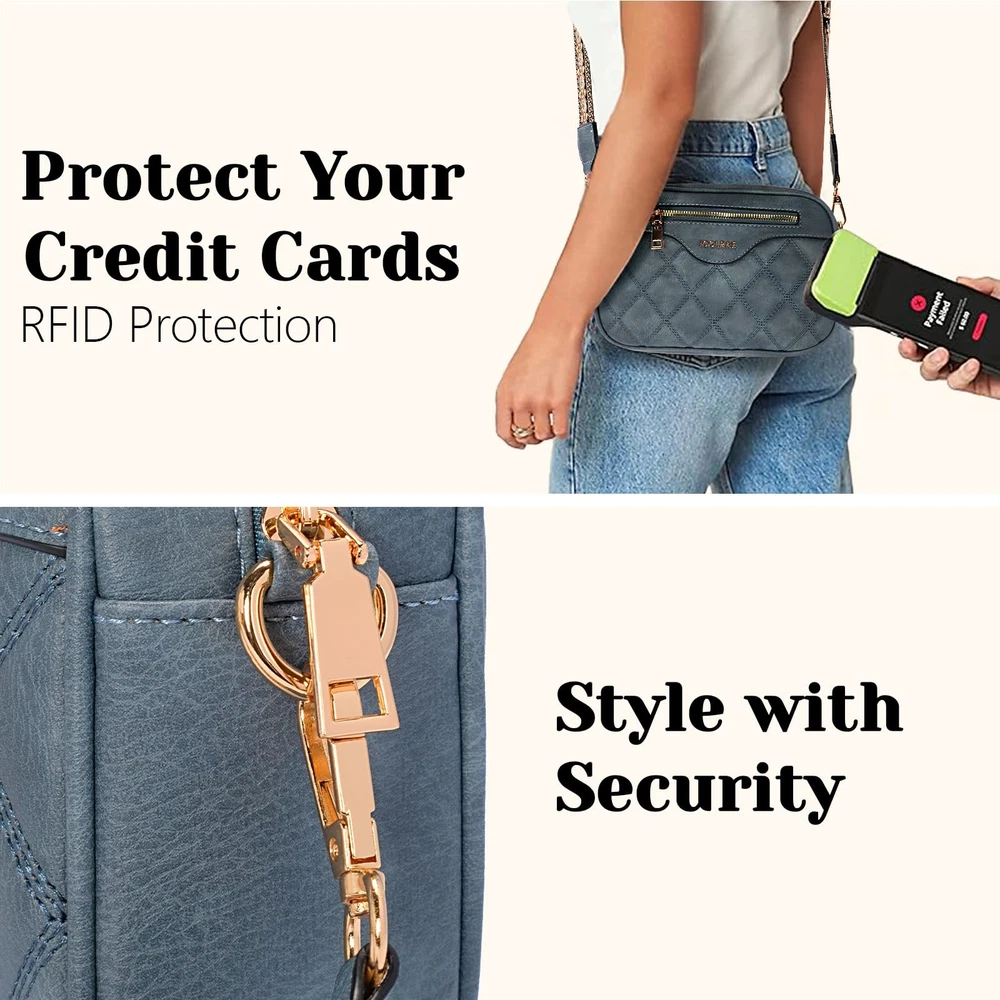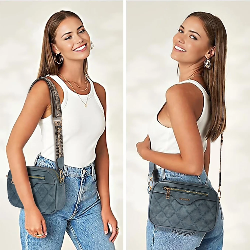 Blending style and functionality, crossbody bags for women with quilted vegan leather and a classic design—ideal for daily outings, trips, or errands. Measuring 8.85"(L) x 2.16"(W) x 5.91"(H), this women’s crossbody bag fits your phone (even large models), wallet, keys, and essentials, offering just enough space without bulk. The adjustable strap (37.9"-59.52") lets you switch between crossbody (hands-free) and shoulder carry, ensuring comfort for all. Crafted from waterproof, anti-peel synthetic leather, it’s durable and easy to clean; peach-skin velvet lining protects belongings, while gold-tone hardware adds elegance. Main pocket, inner/outer zippers, it keeps items organized—no more digging. It’s lightweight for all-day carry. Perfect as a Valentine’s Day, Mother’s Day, or birthday gift, crossbody bag merges quality, modern design, and practicality—essential for fashion-savvy women. ★【Stylish & Functional Design】 This trendy crossbody bags for women has beautiful quilted, compact and lightweight. It is made from soft vegan leather and feels soft to the touch. Smooth fabric interior prevents scratching items inside, and a wide adjustable strap for all-day comfort. ★【Multi-functional Pocket】 The women crossbody purse equipped with 2 zipper pockets, including a front zipper pocket, a main zipper pocket with an inner zipper pocket and an inner side pocket, can carry your phone, wallet, keys, sunglasses and makeup without clutter. ★【RFID Blocking Protection】 Safeguard credit cards & passports from digital theft with effective RFID-blocking lining, ensuring the safety of your personal information during travels or daily commutes. ★【Adjustable & Secure】 The small shoulder bag is 8.85"(L) x 2.16"(W) x 5.91"(H) in size. 37.9"-59.52" detachable guitar strap for crossbody, shoulder, or clutch wear. Zippered pockets protect essentials from pickpockets. ★【Ideal Choice】 The women's crossbody handbag will be your stylish companion for dating, shopping, travel, hiking or work. Ideal for birthdays, holidays, or everyday use.