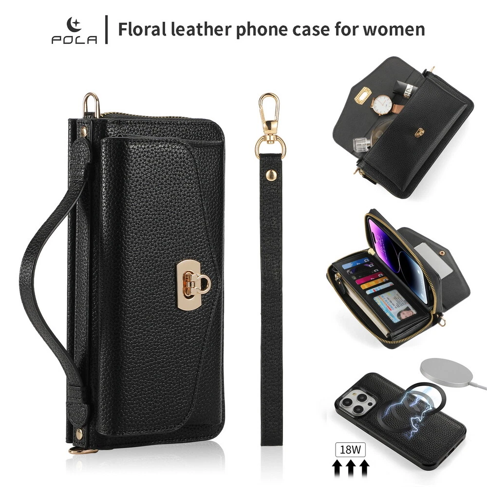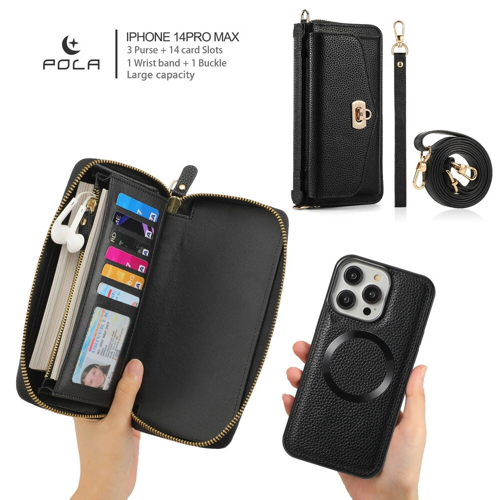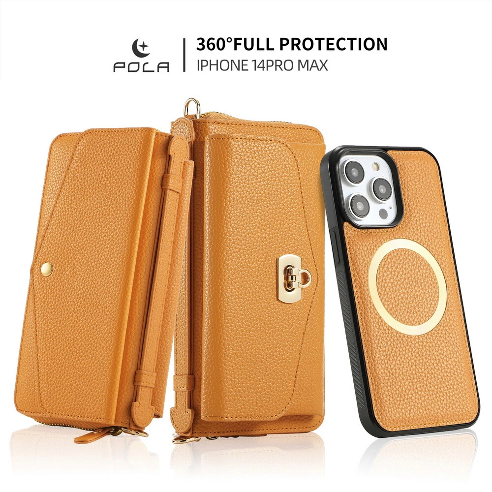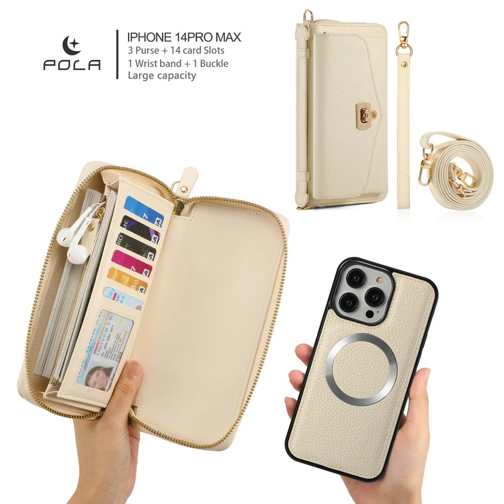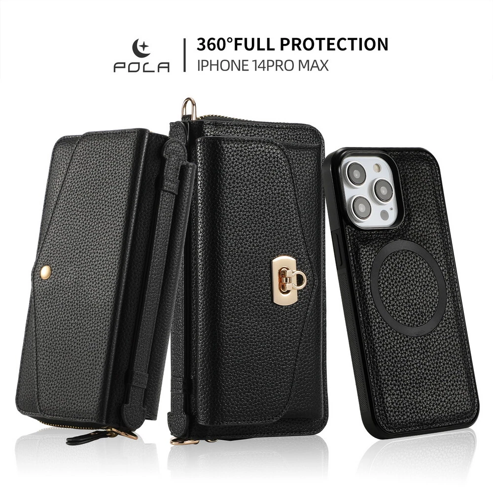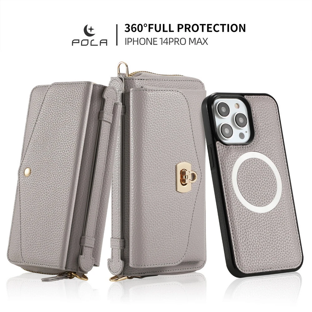 Features: 360 Protection, Card Pocket, Flexible, Heavy Duty, Kickstand, Lightweight, Magnetic, Shockproof, Water-Resistant, Wireless Charging, With Strap, Clutch, Money Pocket, magsafe, satchel Weight: 400g Material: Leather MPN: handbag, purse, wireless charging, Removable, crossbody, shoulder strap, hand strap, card slot, card holder, detachable, women, girl, femininity, woman, female, moneybag, clutch bag, clutch, shoulder bag, messenger bag, cross body, stylish bags, heavy duty, magnets, full body, satchel Item Weight: About 400g Compatible Brand: For Apple Design/Finish: Hybrid, Luxury, Metallic, Plain, Rugged, Zipper Type: Wallet Case Compatible Model: For Apple iPhone 11, For Apple iPhone 11 Pro, For Apple iPhone 11 Pro Max, For Apple iPhone 12, For Apple iPhone 12 Pro, For Apple iPhone 12 Pro Max, For Apple iPhone 13, For Apple iPhone 13 Pro, For Apple iPhone 13 Pro Max, For Apple iPhone 14, For Apple iPhone 14 Plus, For Apple iPhone 14 Pro, For Apple iPhone 14 Pro Max, For Apple iPhone 15, For Apple iPhone 15 Plus, For Apple iPhone 15 Pro, For Apple iPhone 15 Pro Max, For Apple iPhone 8, For Apple iPhone 8 Plus, For Apple iPhone SE (2nd Generation), For Apple iPhone SE (3rd Generation), For Apple iPhone X, For Apple iPhone XR, For Apple iPhone XS, For Apple iPhone XS Max, For Apple iPhone 16, For Apple iPhone 16 Plus, For Apple iPhone 16 Pro, For Apple iPhone 16 Pro Max Brand: POLA Wireless Charging Standard: Magnetic