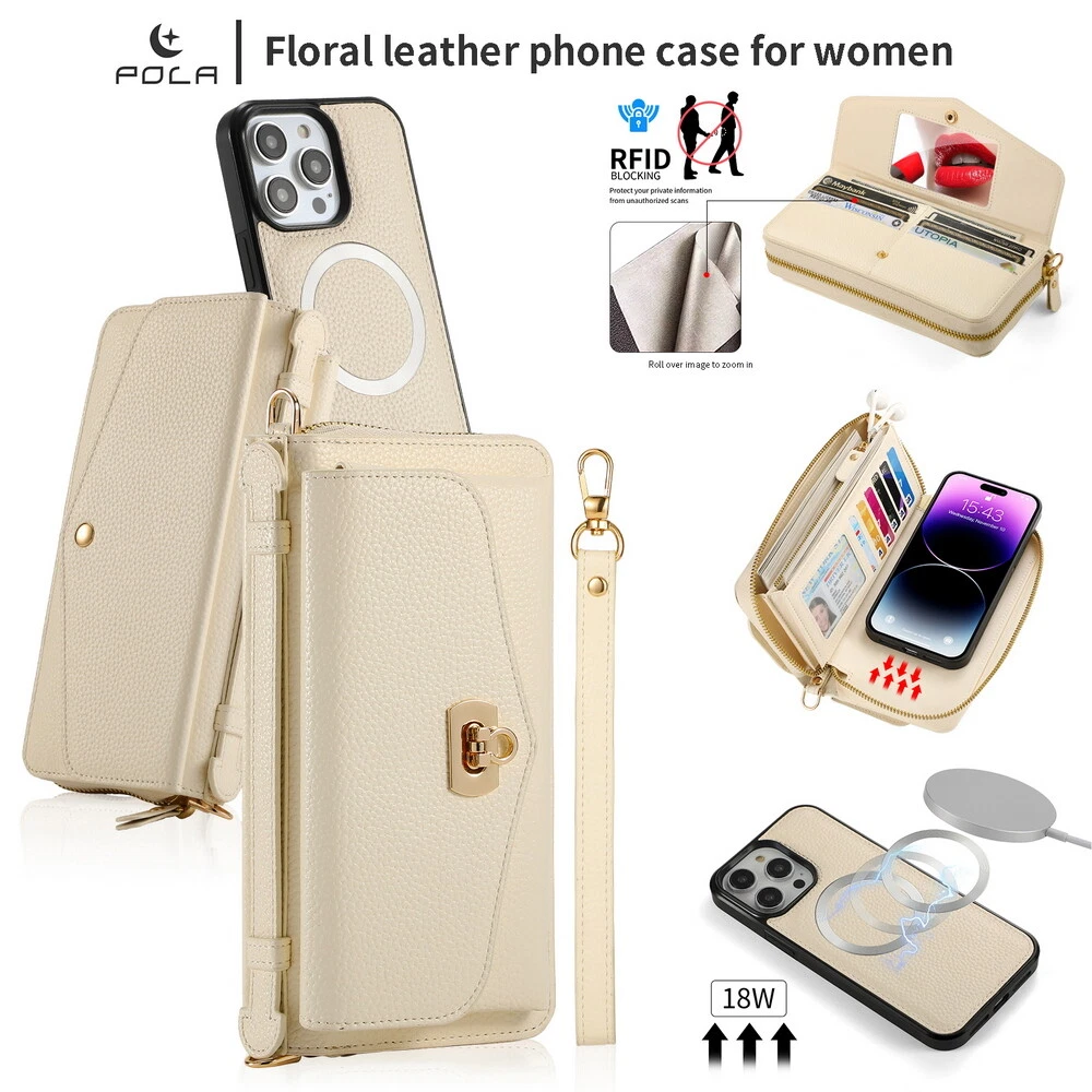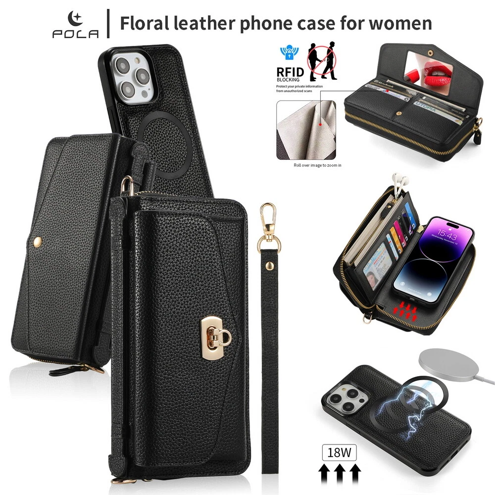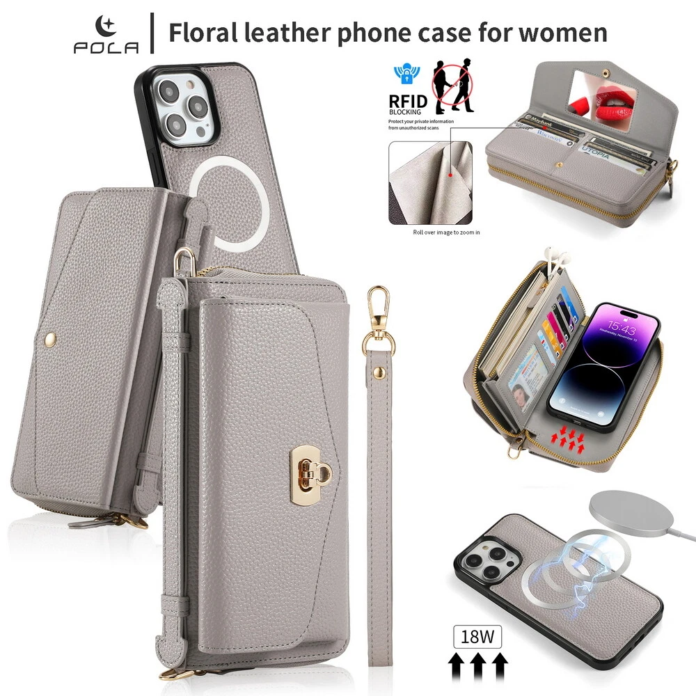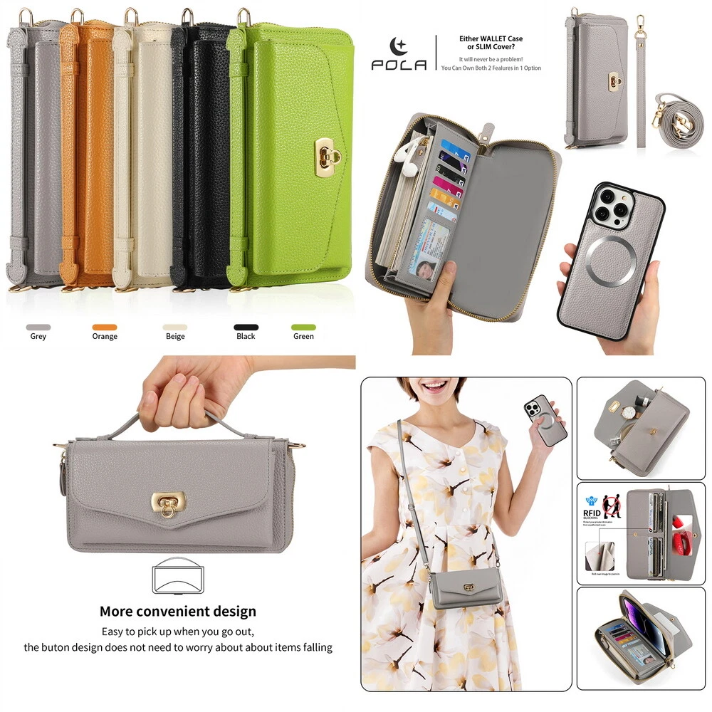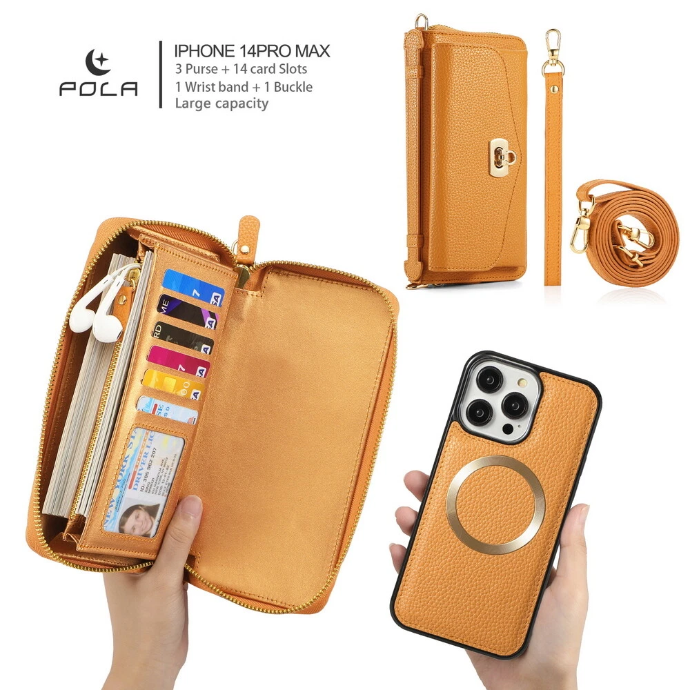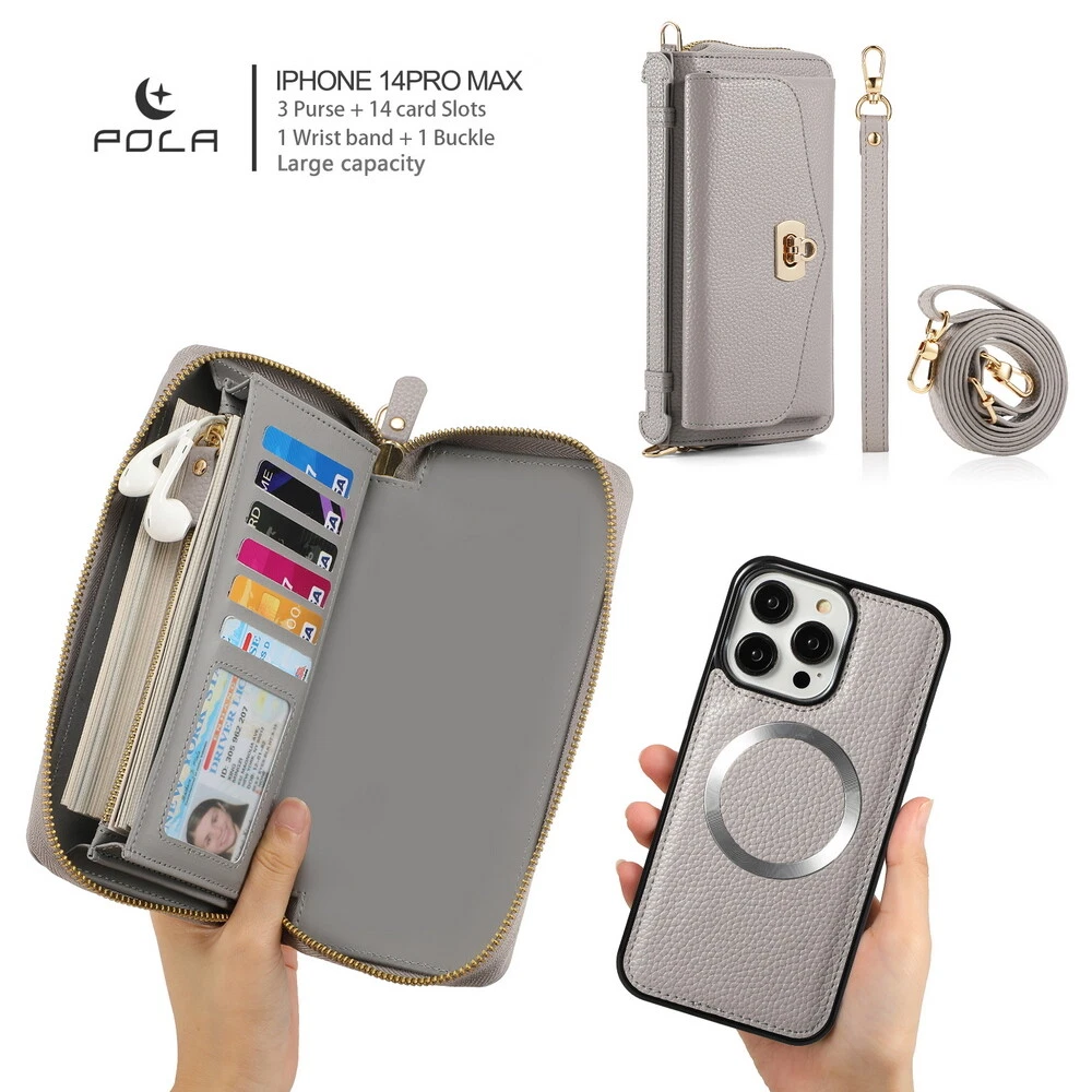 Features: 360 Protection, Card Pocket, Flexible, Heavy Duty, Kickstand, Lightweight, Magnetic, Shockproof, Water-Resistant, Wireless Charging, With Strap, Clutch, Money Pocket, magsafe, satchel Weight: 400g Material: Leather MPN: handbag, purse, wireless charging, Removable, crossbody, shoulder strap, hand strap, card slot, card holder, detachable, women, girl, femininity, woman, female, moneybag, clutch bag, clutch, shoulder bag, messenger bag, cross body, stylish bags, heavy duty, magnets, full body, satchel Item Weight: About 400g Compatible Brand: For Apple Design/Finish: Hybrid, Luxury, Metallic, Plain, Rugged, Zipper Type: Wallet Case Compatible Model: For Apple iPhone 11, For Apple iPhone 11 Pro, For Apple iPhone 11 Pro Max, For Apple iPhone 12, For Apple iPhone 12 Pro, For Apple iPhone 12 Pro Max, For Apple iPhone 13, For Apple iPhone 13 Pro, For Apple iPhone 13 Pro Max, For Apple iPhone 14, For Apple iPhone 14 Plus, For Apple iPhone 14 Pro, For Apple iPhone 14 Pro Max, For Apple iPhone 15, For Apple iPhone 15 Plus, For Apple iPhone 15 Pro, For Apple iPhone 15 Pro Max, For Apple iPhone 8, For Apple iPhone 8 Plus, For Apple iPhone SE (2nd Generation), For Apple iPhone SE (3rd Generation), For Apple iPhone X, For Apple iPhone XR, For Apple iPhone XS, For Apple iPhone XS Max, For Apple iPhone 16, For Apple iPhone 16 Plus, For Apple iPhone 16 Pro, For Apple iPhone 16 Pro Max Brand: POLA Wireless Charging Standard: Magnetic