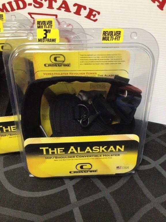 CROSSFIRE THE ALASKAN LOW PROFILE HIP/BELT OR SHOULDER CARRY PISTOL HOLSTER - AMBIDEXTROUS: The Alaskan is a low-profile Versa-Holster that converts from a hip/belt holster system to a fully-functional shoulder holster system. The Alaskan is also a fully ambidextrous holster that can work as a crossdraw or traditional carry configuration. Constructed of 1680 Denier ballistic nylon for enhanced durability, this hip/shoulder carry holster boasts a memory foam laminate technology that molds to the gun making this extremely comfortable to wear. FEATURES: - Low-profile Versa-Holster that converts from a fully functional shoulder holster to a hip/belt holster; - Switch between hip & shoulder carry; - Fully ambidextrous - holster fits left and right-handed shooters; - Wear holster in cross draw or traditional carry; - Ergonomic padded shoulder pad that curves to the shape of your shoulders; - Sturdy belt loop; - "Speed-Retainer" system for extremely fast access to the gun; - Memory-type foam laminate technology molds to the gun providing a custom fit; - Durable 1680 denier Ballistic Nylon retains its shape
