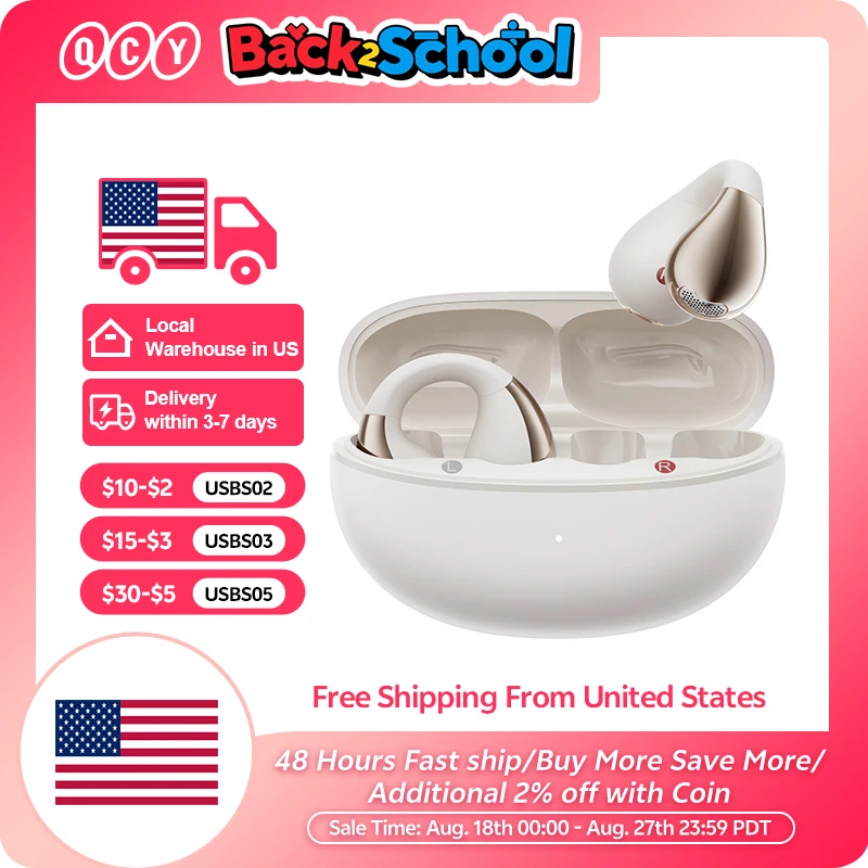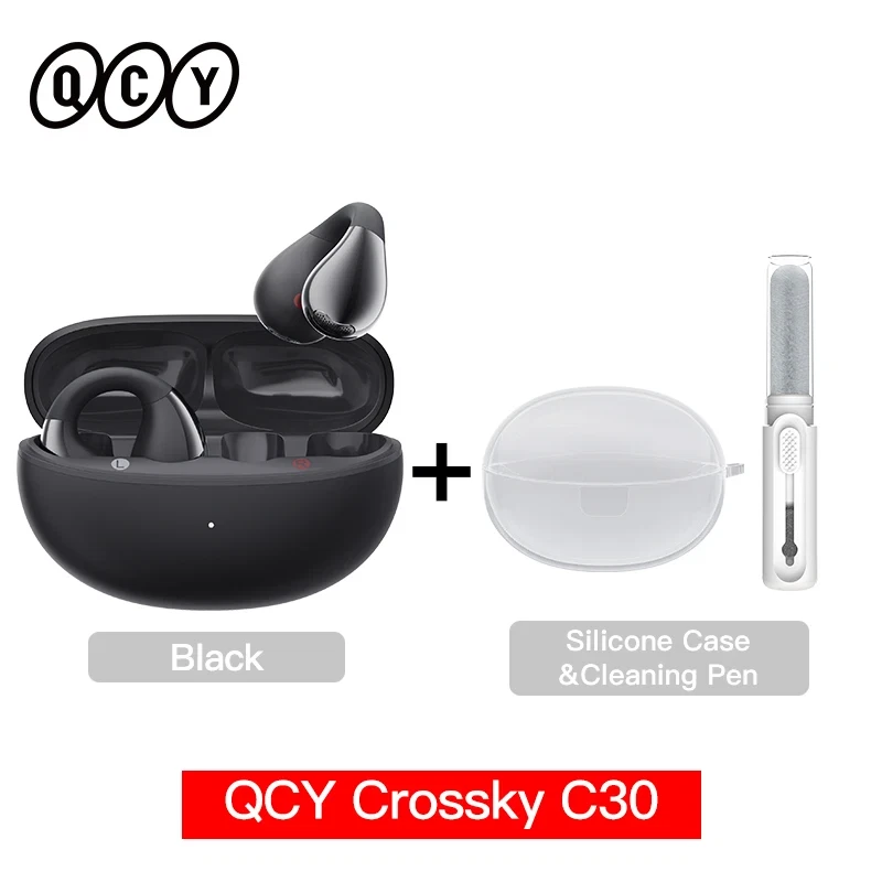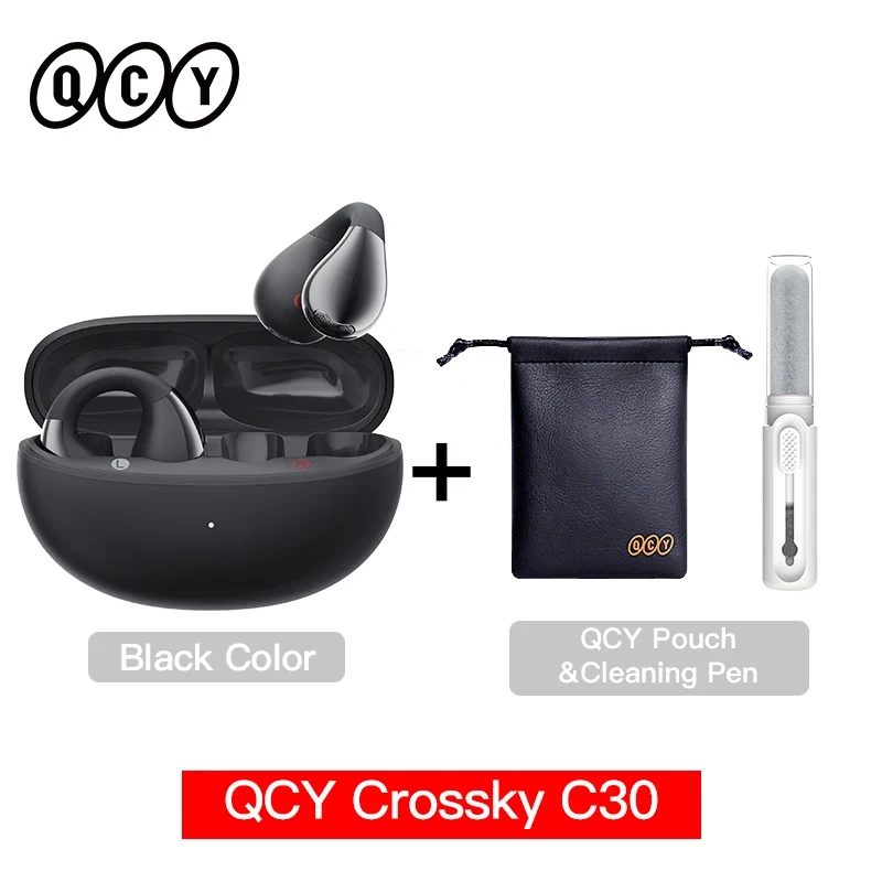 QCY Crossky C30 Ear Clip Earphones Bluetooth 5.4 Wireless Open Ear Sports TWS Earbuds Dual-Connection Earclip Headphones Ear clip Design Earphones: With C-Shape open-ear design, QCY Crossky C30 keeps you in sync with your surroundings, without sealing the ear canal. 10.8mm Dual-Magnet Driver and Advanced Directional Audio: With 10.8 mm dual-magnet high-sensitivity driver unit, the headphones deliver sterling sound quality and clear vocals within a tiny, delicate⁠ body. With advanced directional audio technology and auto sound beam adjustment, sounds are transmitted precisely into ear canal, making for a private listening⁠ experience. Bass Enhance algorithm: Our dynamic EQ algorithm improves the bass performance, and reduces high-frequency distortion, delivers balanced sound no matter how loud you turn it up. Multipoint Connection and Bluetooth 5.4: You can connect the earbuds to two devices at the same time. Seamless switch between them with simply one click; The latest Bluetooth 5.4 technology ensures faster transmission and more stable connection. 25 Hours Battery Life: Our earphones offer battery life of 25 hours with charging case, On a single charge, you can enjoy up to 5.5 hours of playback. QCY APP and Personalized EQ: Enjoy personalized listening with customized EQ options on QCY APP. Style It Your Own Way The headphone features an elegant matte texture paired with a mirror-like sheen finish on the acoustic ball, making them a chic accessory for any outfit. Open Up Your Ear With C-Shape open-ear design, QCY Crossky C30 keeps you in sync with your surroundings, without sealing the ear canal. 12° Non-Symmetry Design For easy one-handed wear Flexible Ni-Ti Memory Alloy With a soft silicone finish, the arm fit the majority of⁠ ears. Stable and Secure Fit Clip-on for stability while on the move. Wrap Around Your Ears Fits perfectly alongside glasses and other accessories. Minimised Sound leakage With advanced directional audio technology and auto sound beam adjustment, sounds are transmitted precisely into ear canal, making for a private listening⁠ experience. Vibrant and Clear Audio With 10.8 mm dual-magnet high-sensitivity driver unit, the headphones deliver sterling sound quality and clear vocals within a tiny, delicate⁠ body. Bass Enhance algorithm Our dynamic EQ algorithm improves the bass performance, and reduces high-frequency distortion, delivers balanced sound no matter how loud you turn it up. Noise Cancelling Clear Calls The headphone is built with a noise-reduction microphone to deliver crystal-clear calls. 25 Hours Long-Lasting Listning Listen up to 5.5 Hours using the earbuds alone; total 25 Hours battery life with charging case. More Feature: Seamless Dual⁠-⁠Device Connections, IPX4 Water-Resistant, Bluetooth 5.4, Support QCY APP. What's in the Box: Earbuds * 1 pair Charging case *1 User Manual * 1 Type-C charging cable *1 Specifications: Product Name: QCY Crossky C30 Type: Open Ear Color: Black/Purple/White Driver: φ10.8mm dual-magnet driver Audio codec: AAC/SBC Call noise cancellation: Dual-mic ENC call Bluetooth version: Bluetooth 5.4 Effective bluetooth range: 10m Charging Case Battery Capacity: 400mAh Battery capacity: 32mAh(earbud) Battery life: 5.5h(earbuds), 25h with charging case Cable charge time: 2h Charging port: USB Type-C Weight: 5g (single earbud) FAQ: Q: What should I do if the headset received unable to turn on? A: Confirm that the charging case has power left, press the button on the case and check if at least one LED is illuminated. If charging case power off, please put the earphones in charge case and charging for 1 hour. Before charging, please Remove the stickers on new earphones. Connect the case with your included USB cable and plug it into a USB power source. Q: What should I do if Sound comes from only one earphone? A: Put both earphones back into the charging caseand close the cover, then take them out again to check whether both ears have sound. If only one earphone still has sound, please restore the factory settings for both earphones. Q: How to solve the problem that the mobile phone prompts that it cannot connect? A: Delete the pairing record on the mobile phone, and then search for pairing and connect again. Q: How to solve the problem that there is no sound when listening to music or calling? A: There is a settings icon on the right side of the Bluetooth connection name on Android phones. Click to enter, turn off the mobile phone audio and media audio, and then turn them on again. If there is still no sound, please re-pair the earphones with the mobile phone. Q: Why is there a delay in video or games? A: Affected by factors such as the use environment, network and mobile phone Codec, there will be different degrees of delay when the mobile phone transmits audio data to the earphone. Q: How to solve the problem of stuckor intermittent sound? A: If there are a lot of Wi-Fi, 5G or 4G signals, high-power electrical appliances around, it may cause stuck and intermittent sound. Please Change the environment or re-pairing can solve the problem. Other Tips: 1. Before using the earbuds, please read the manual carefully and keep it for future references. 2. The earbuds need to be fully charged prior to first-time use. 3. lf the earbuds are left unused for over two weeks, please recharge. 4. Please use the chargers made by qualified manufacturer. 5. lf earbuds fail to be found by phone, please re-turn them connectable or restore factory settings. 6. lf a program error of phone occurs, please turn off and on Bluetooth function or reboot the phone.
